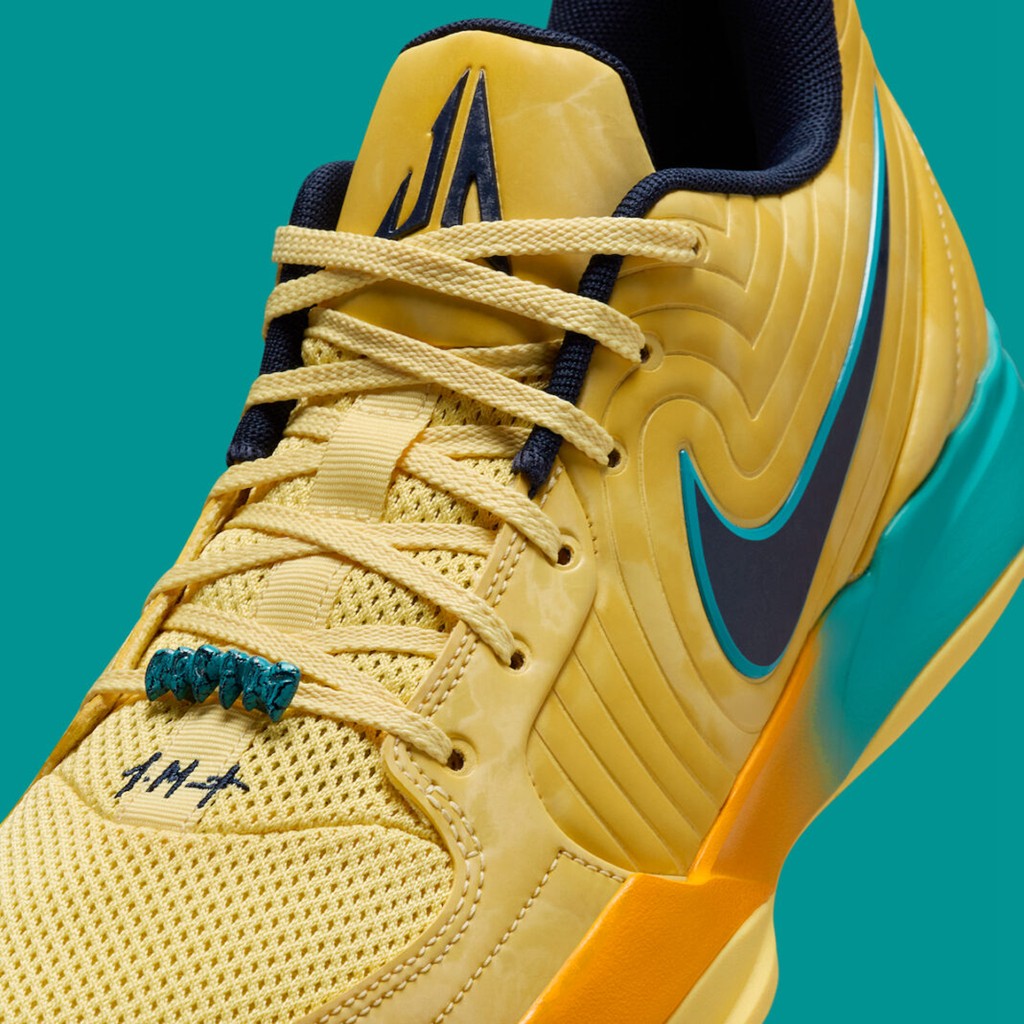 Nike JA2 非常意外地成为最近半年实战圈的最强黑马,口碑相当不错,性价比也高。 最近迎来最新配色,采用黄绿搭配,让人联想起西雅图超音速的经典造型。 JA2 一直以来的配色都以活力、清爽著称,这双也不例外,是非常适合夏季实战的一双鞋。 科技方面,搭载了前掌 Air Zoom 气垫,实战口碑无需多言。 目前,这双 Nike JA2 “Sonic” 已经登场,会是你的必入款吗? Nike JA2 “Sonic” 货号:FD7327-700 价格:$120 美元