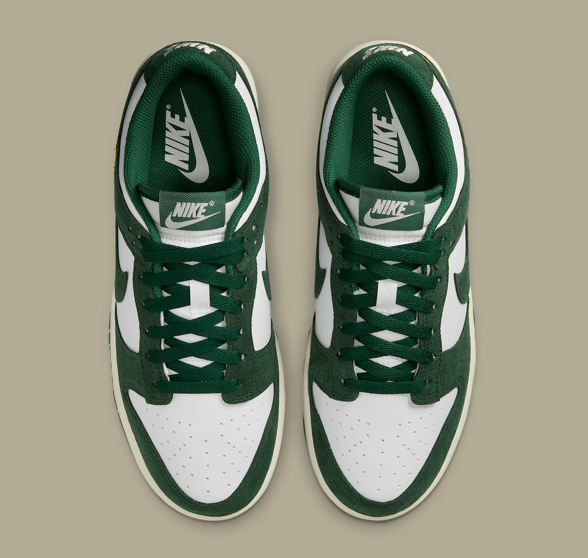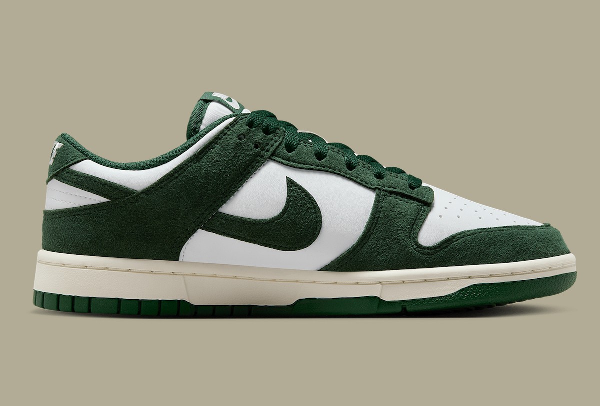 配色方面是 Nike 品牌中经典的白绿造型,鞋身框架是麂皮材质,质感同样不错。