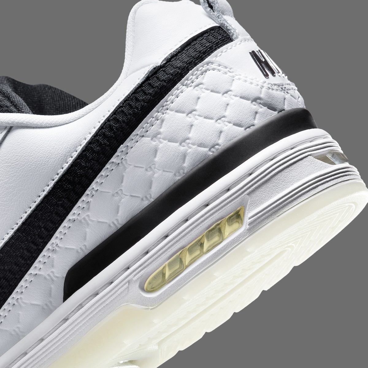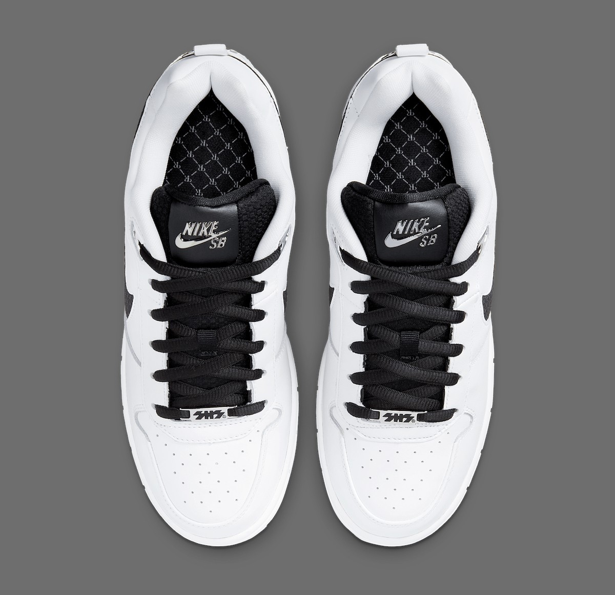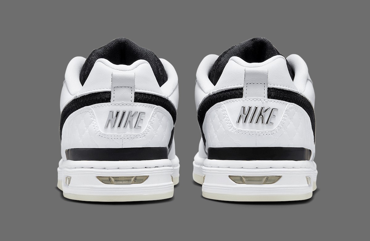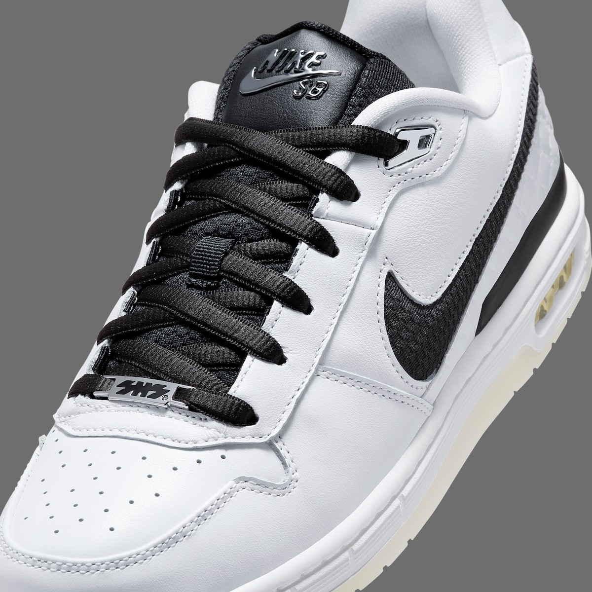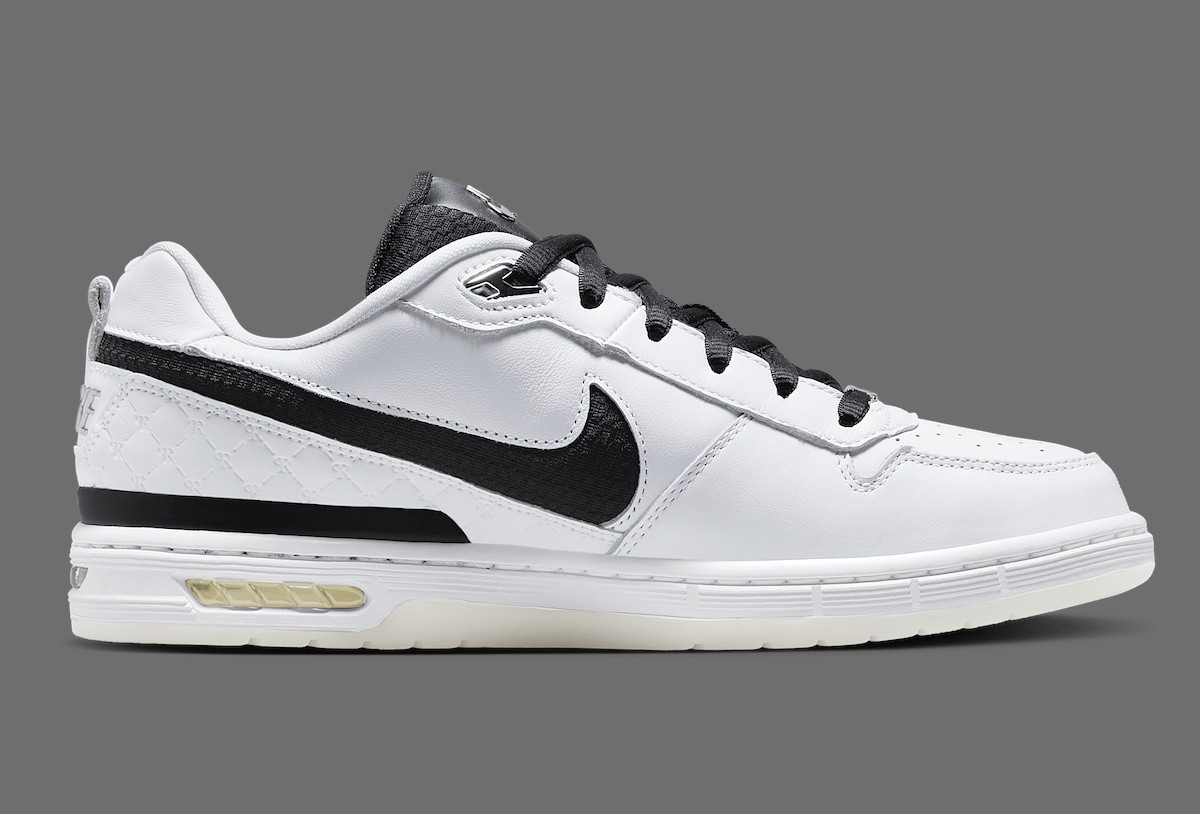 眼前这双以经典黑白装扮呈现,尚不清楚是否会有更多配色,饱满的鞋舌增添了 2000 年代初的滑板氛围。