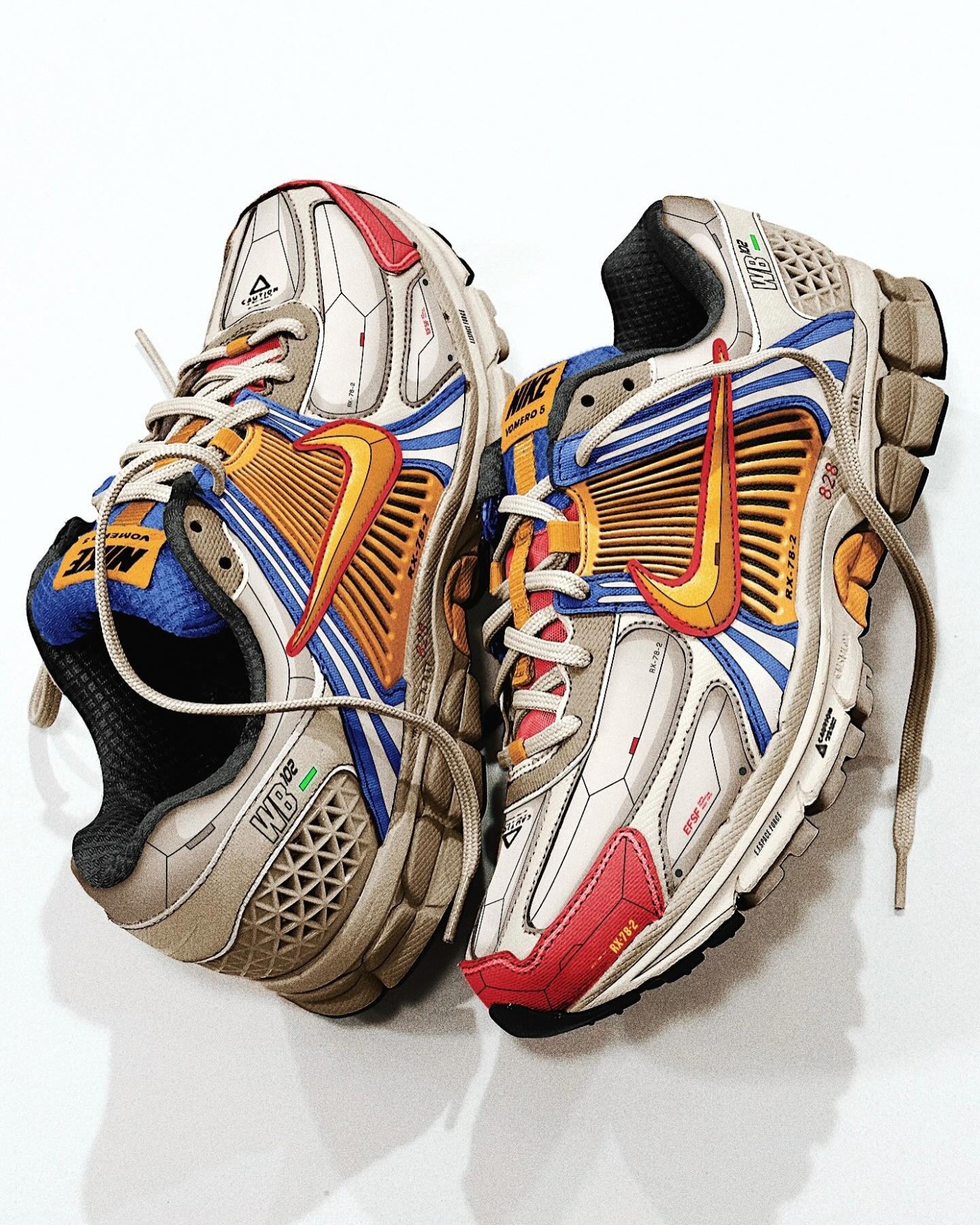首先是一款以著名动漫「进击的巨人」中的「超大型巨人」为原型的鞋款,基于 Nike Vomero 5 鞋型打造。