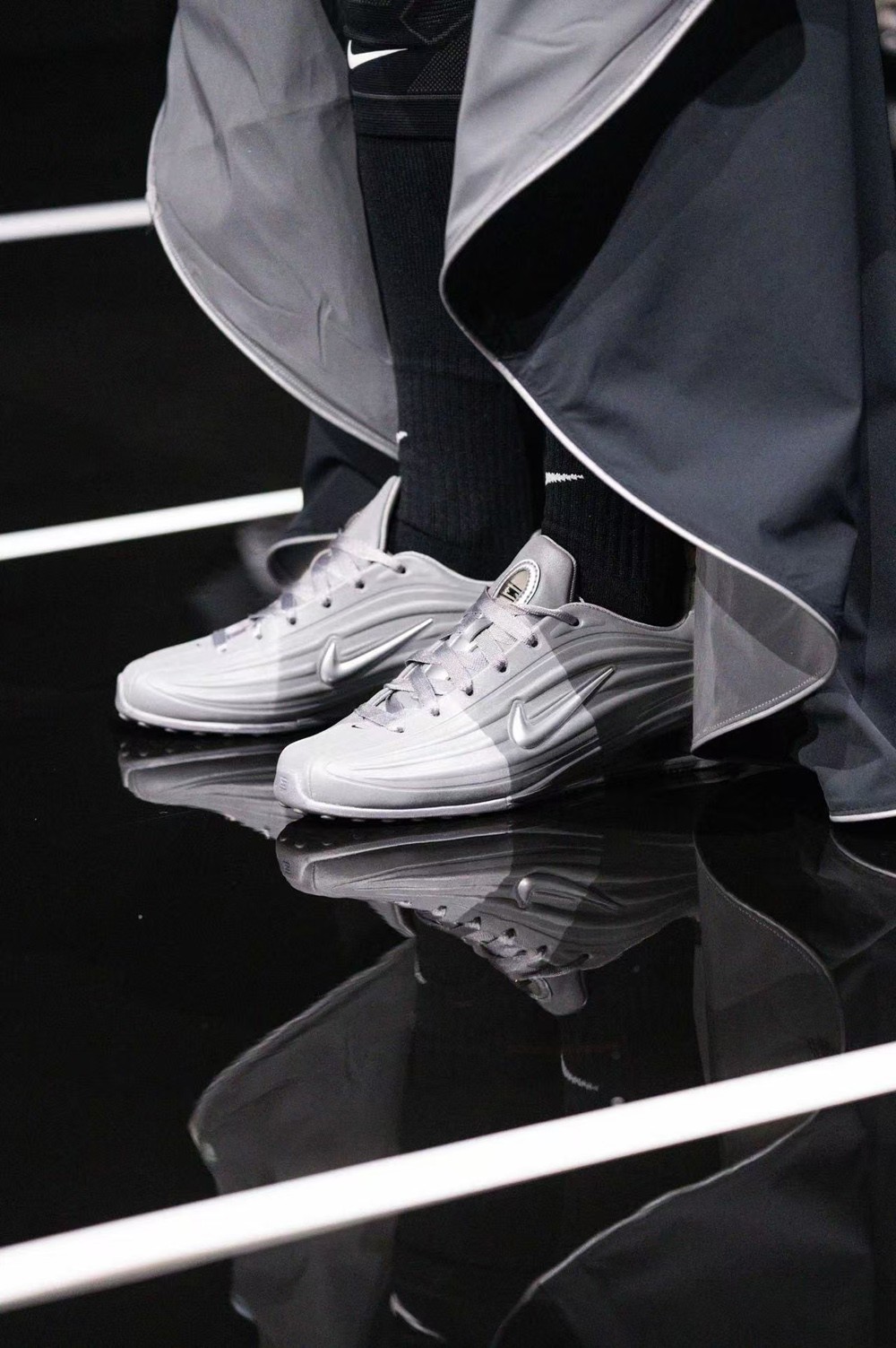 在 2025 秋冬上海时装周期间,耐克作为官方合作伙伴于 4 月 1 日在上海西岸艺术中心压轴带来「Victory Lap - 领跑之秀」,秀场上开场田径运动员葛曼棋穿着一款从未见过的 Shox 新鞋,让人格外好奇。