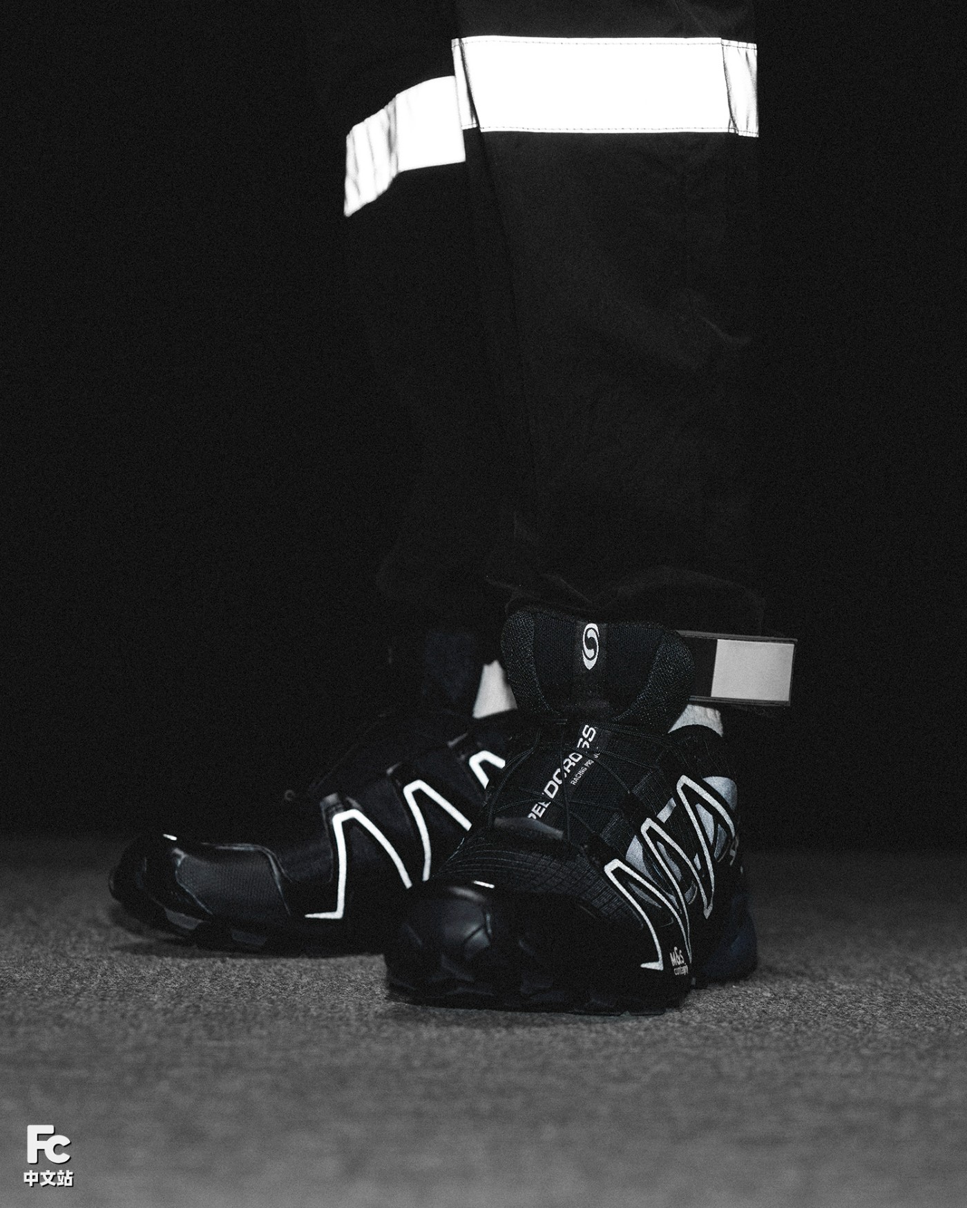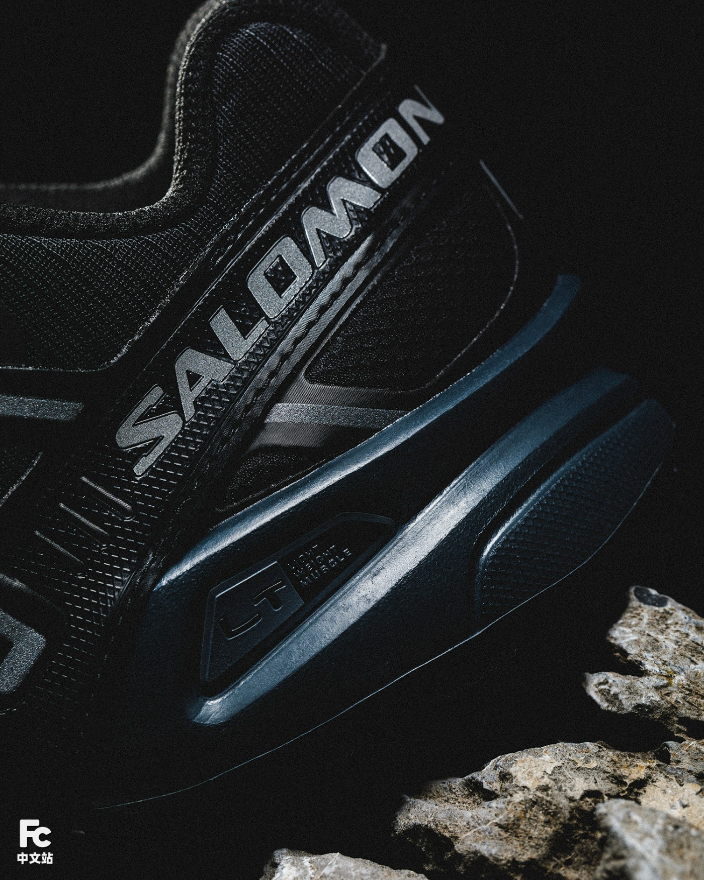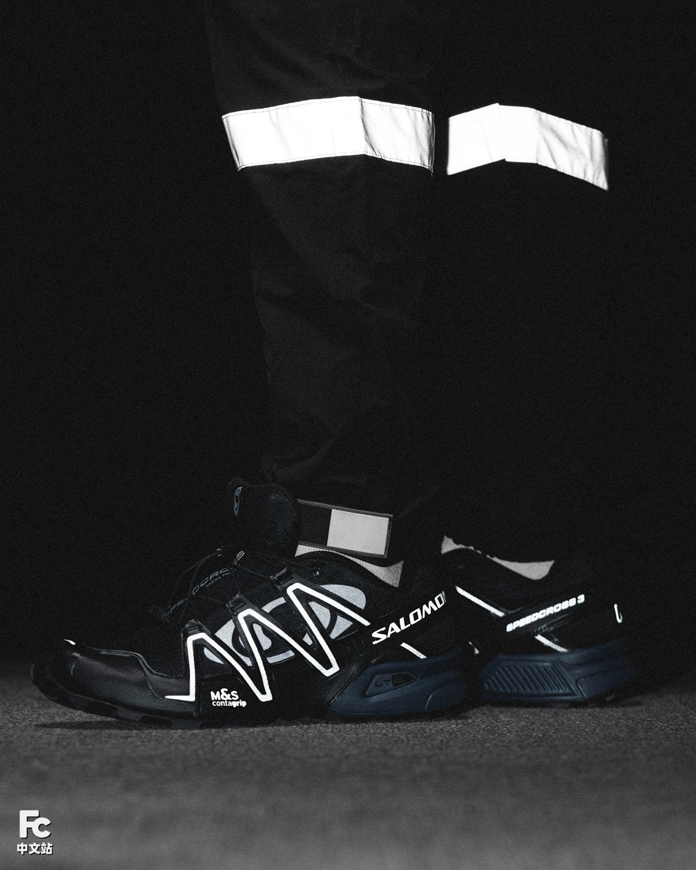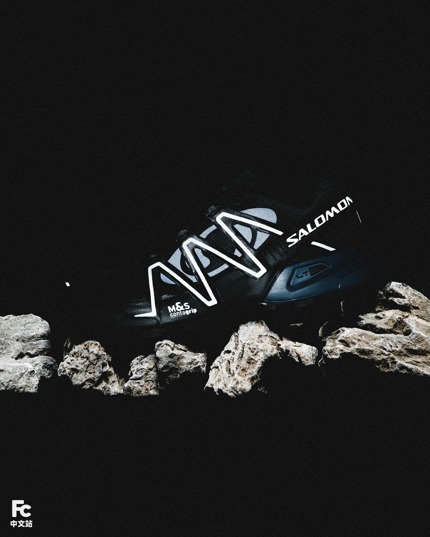 暗光状态下可以看到鞋侧展现出的 3M 反光效果,勾勒出 Salomon 独树一帜的设计语言。