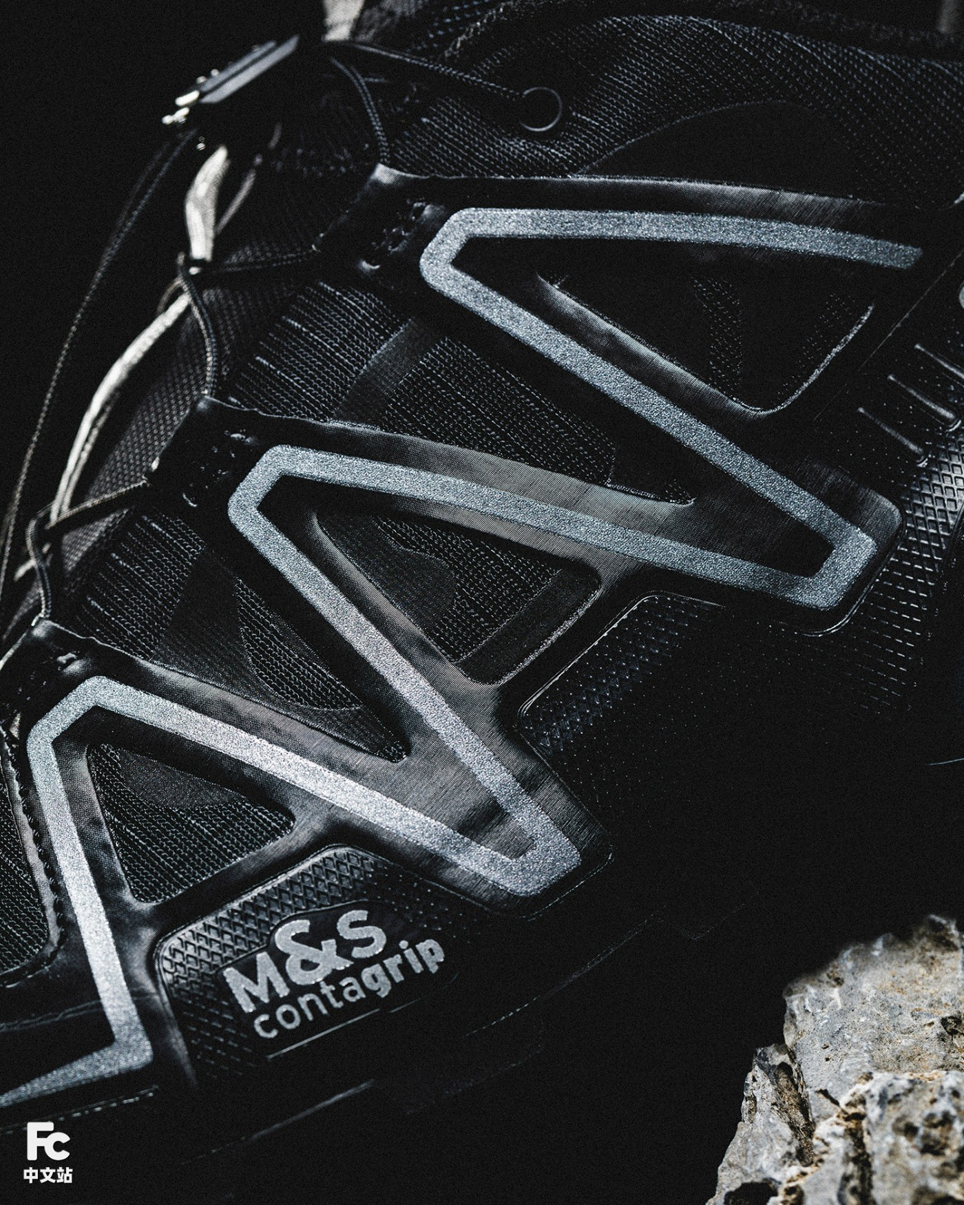 前掌位置的 Contagrip 字样代表着 Salomon 独家的鞋底技术。