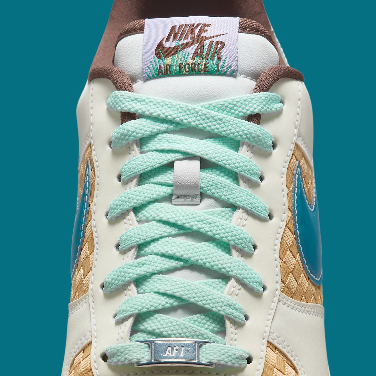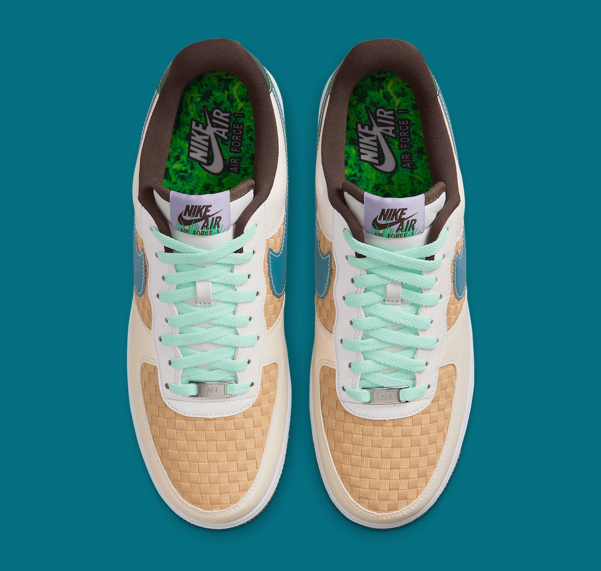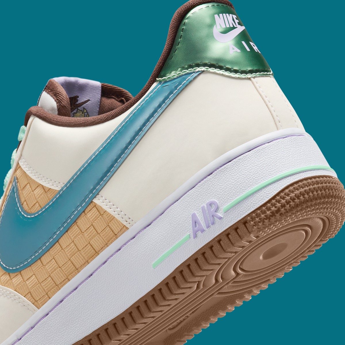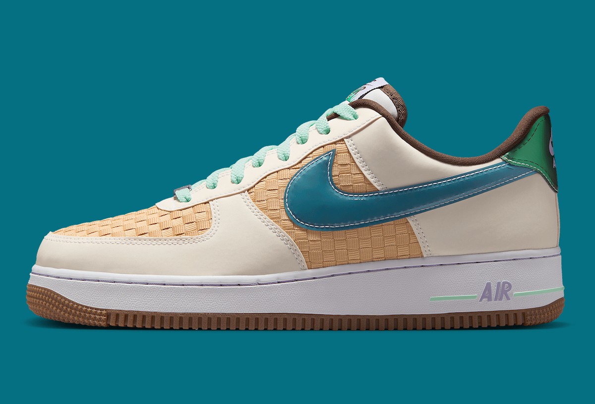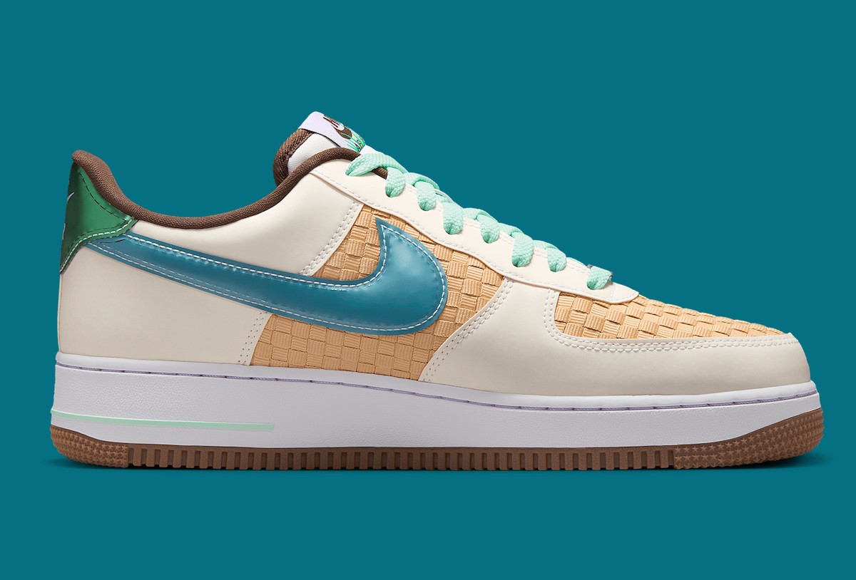 鞋面采用编织纹理呈现,这种设计模仿了复活节篮子的外观,与其它 Air Force 1 有着明显不同。