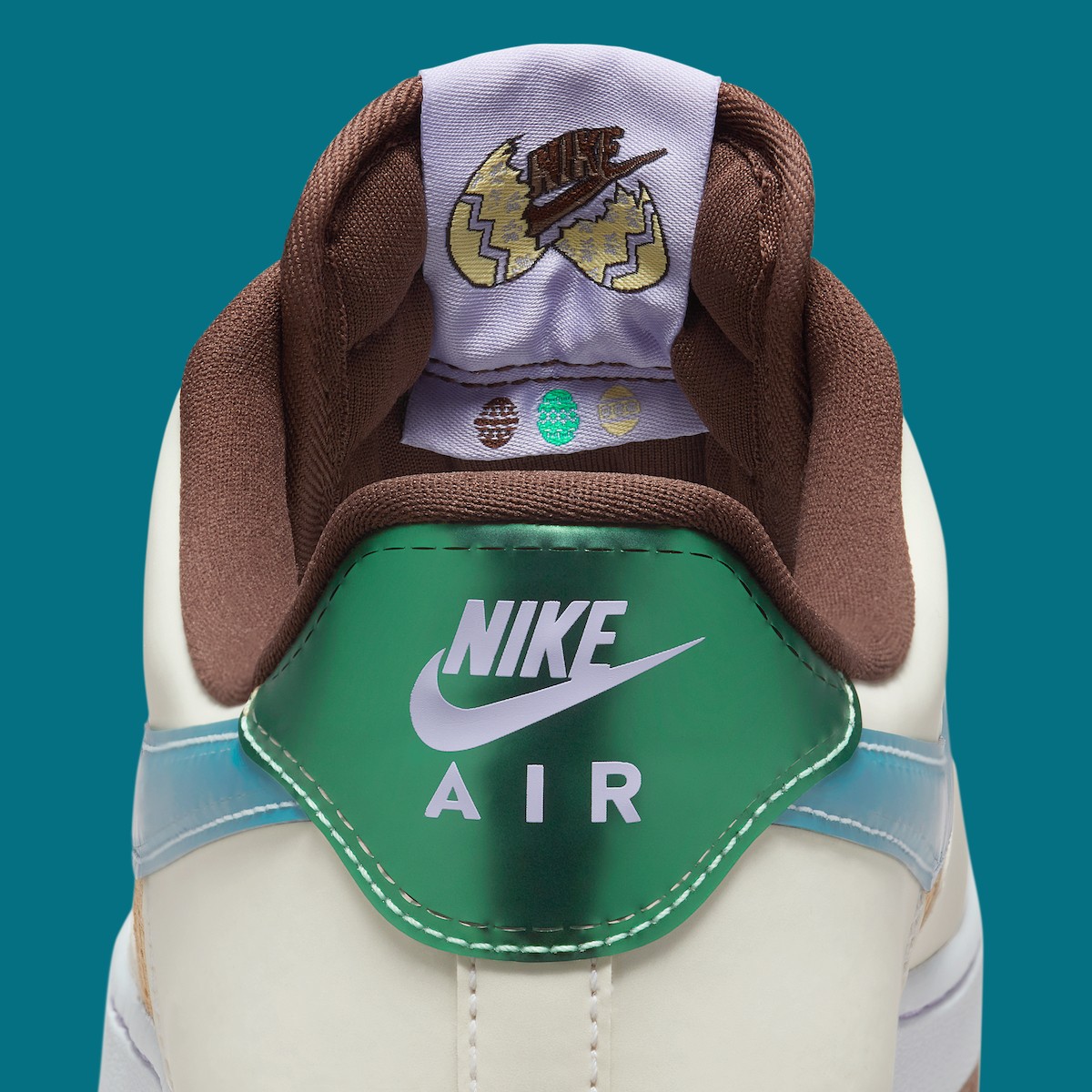 鞋垫设计模仿了复活节篮子中使用的人造草皮,舌标上则是印有一颗破碎的蛋壳。