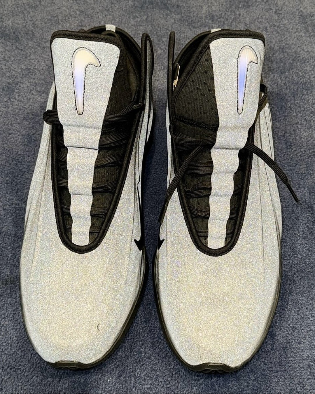 塔克晒的这双鞋覆盖 3M 反光材质,并且鞋舌位置的 Swoosh 似乎还有炫彩效果。
