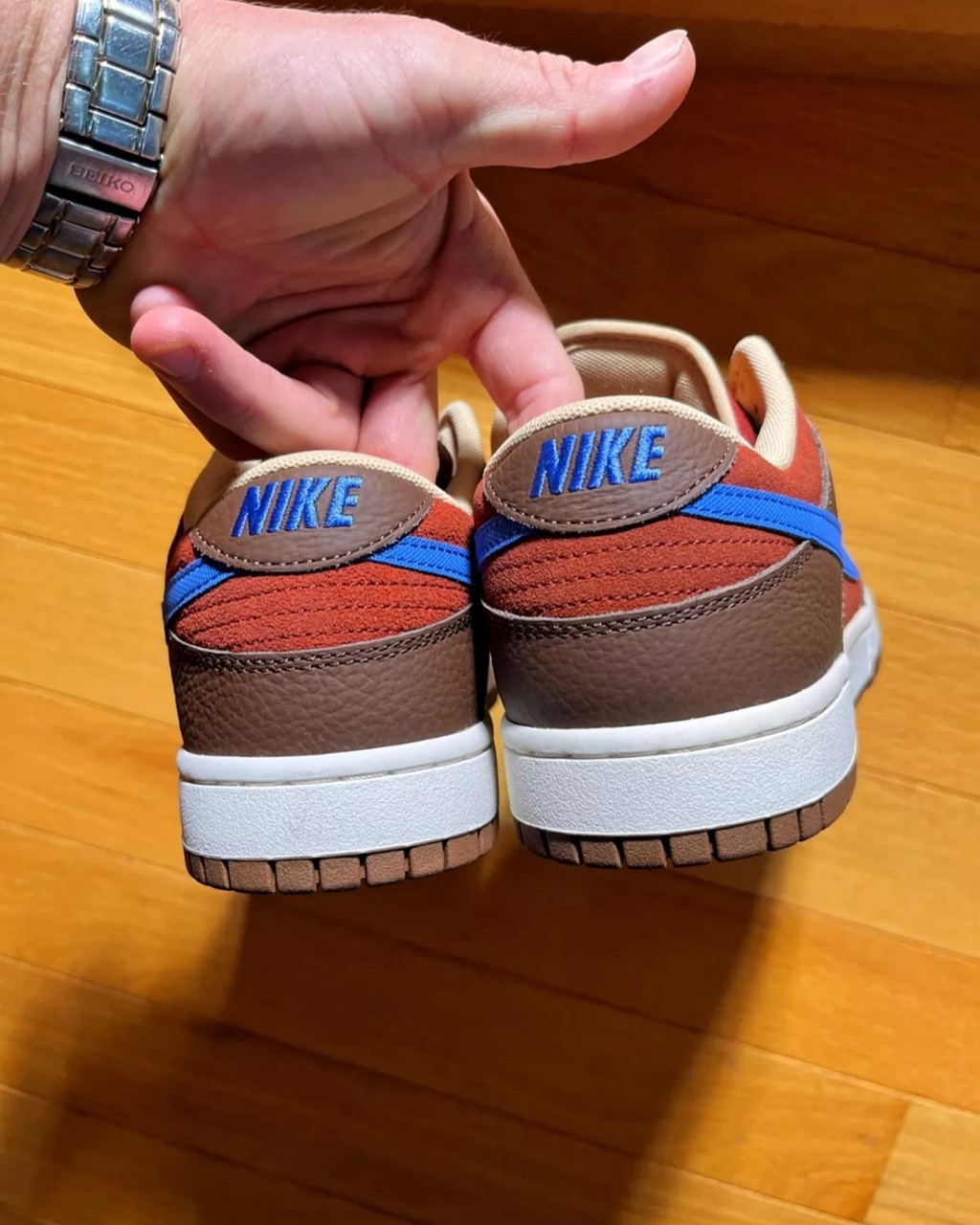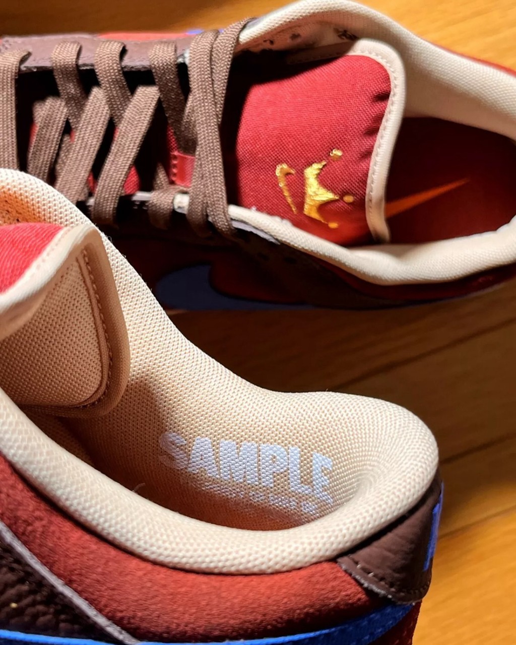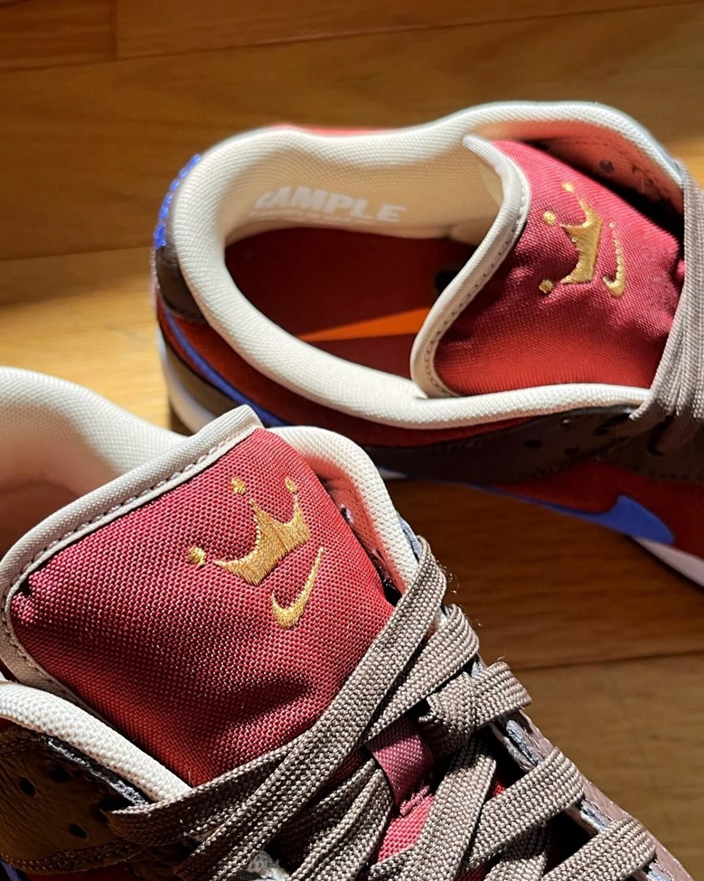 詹姆斯作为 Nike 终身代言人,拥有任何 Nike 鞋都不奇怪,更何况是自己的联名款。 但眼前这双 Nike Dunk Low,恐怕詹姆斯本人真的没有! 根据海外大佬的描述,这双作为测试样品,存世仅此一双。 可以看到,鞋舌的皇冠 Logo 是詹姆斯标志性的符号之一。 鞋面配色采用棕、红、蓝的搭配方案,属于比较典型的皇家配色。 不过大佬没有透露这双鞋没能市售的原因,各位觉得会是因为什么呢? Pic via:shoppewithtrey