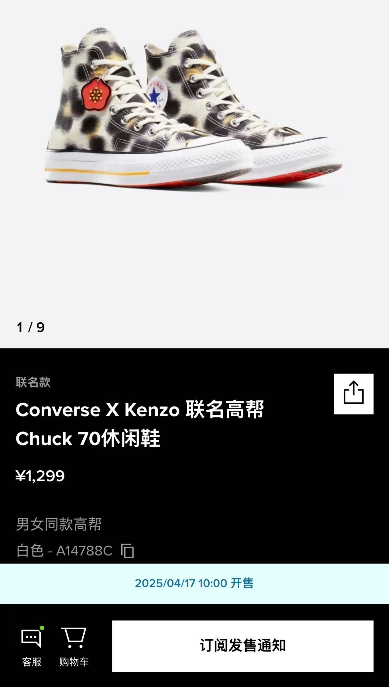 据悉,Converse Chuck 70 x KENZO 系列三款鞋将于 4 月 17 日通过 Converse 和 KENZO 渠道发售。