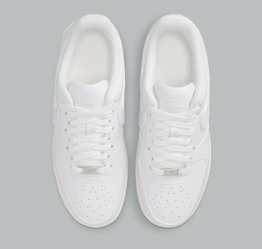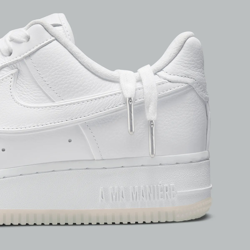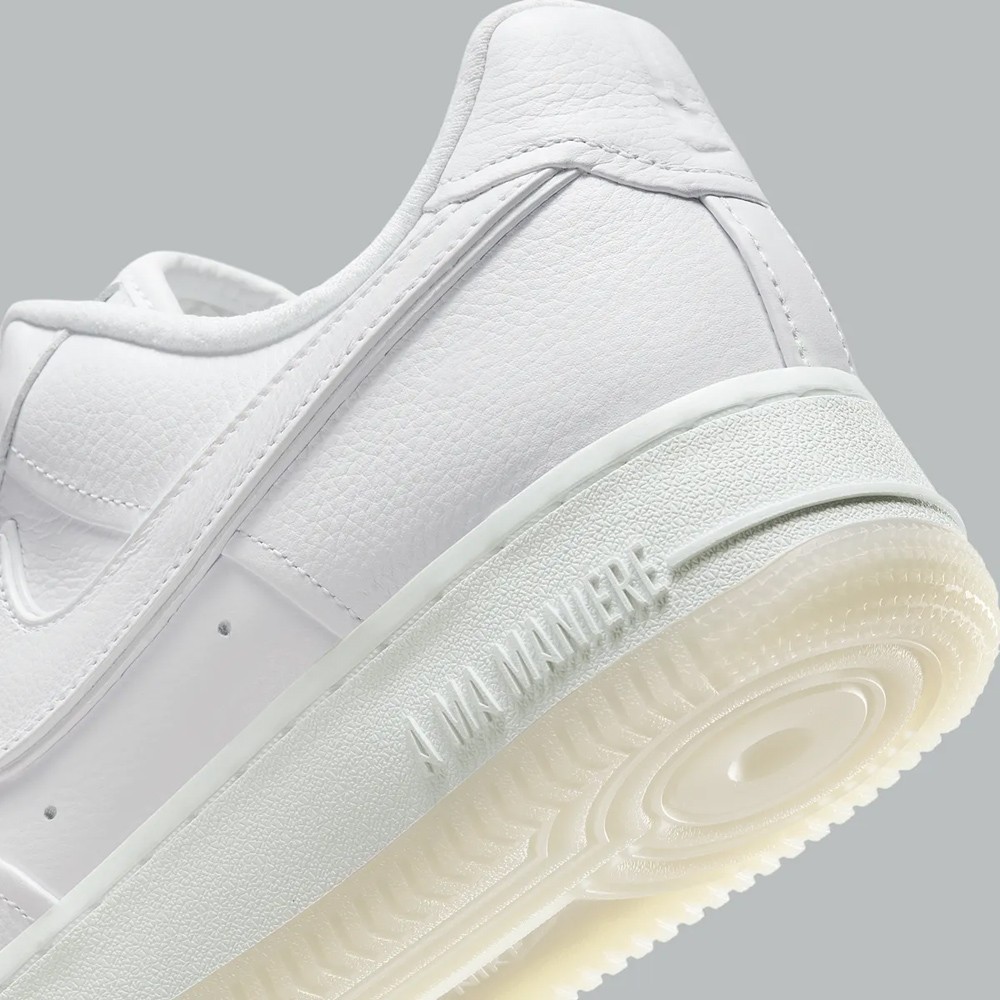 这双全新 A Ma Maniére x Nike Air Force 1 Low 虽然整体采用纯白配色示人,但依然掩盖不住 AMM 独有的精致感。