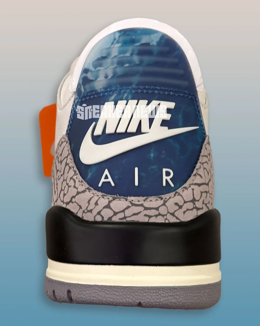 而眼前这双 Air Jordan 3 “JBC” 则是在经典白水泥的基础上,后跟采用晕染的蓝色突显,呼应本次的举办地华盛顿特区。