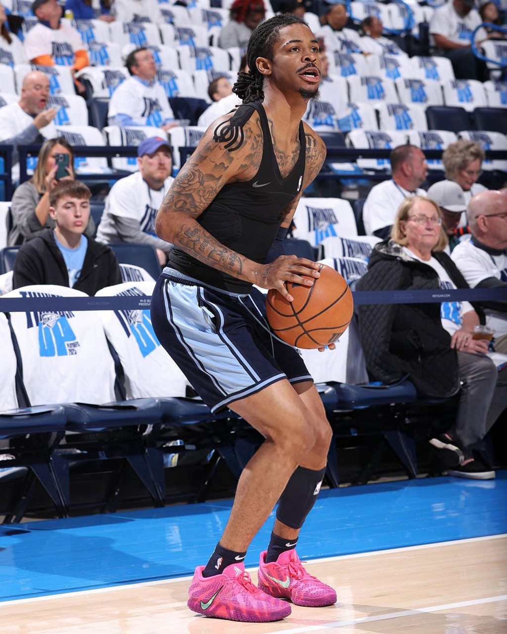 今晨,灰熊迎来季后赛首战,不过媒体们早在比赛前热身环节就已经全部入场,就为了拍摄莫兰特脚下的新鞋。