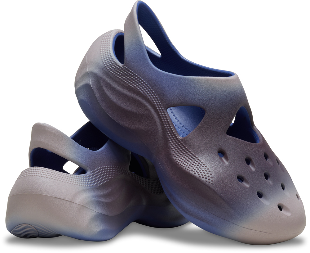 本次联名呼应布加迪跑车的空气动力学设计,同时解构 Crocs 卡骆驰标志性洞洞鞋廓形,既延续了 Crocs 卡骆驰 Swiftwater Wave 波浪纹经典元素,又通过抽象化处理赋予传统工艺流动感,突显速度、动感与能量之美。