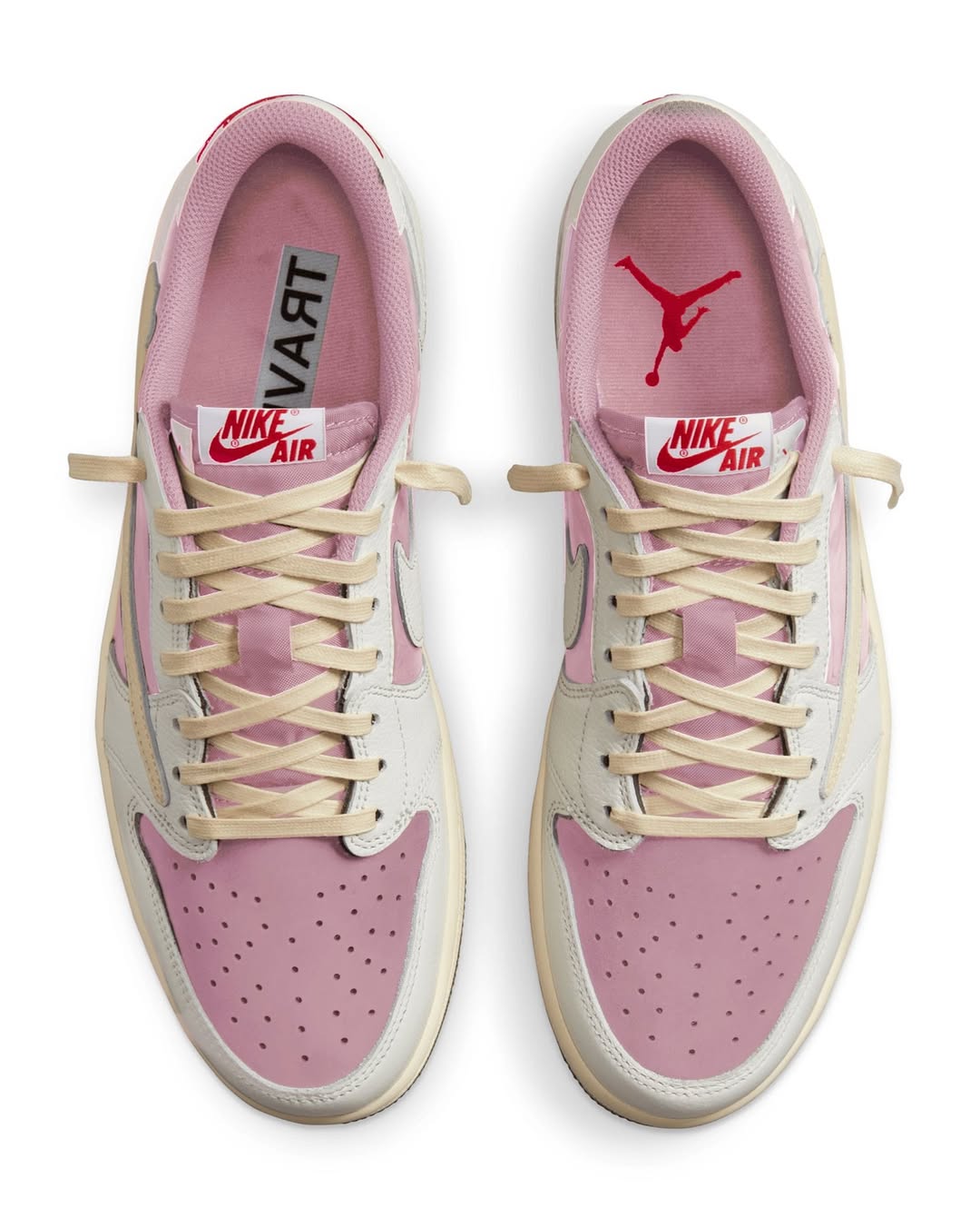 时间来到今天,目前这双白粉倒钩 Travis Scott x Air Jordan 1 Low OG “Shy Pink” 再次释出实物,并有消息称会继续发售,但具体登场日期未定。