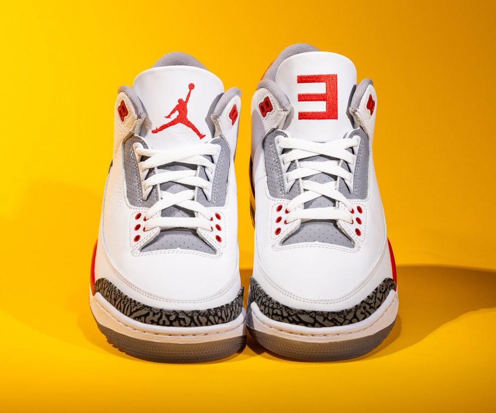 在 2022 年的美国 NFL 橄榄球超级碗中场秀上,阿姆亲自上脚,作为钟情于 OG 的他,这款专属版本 AJ3 PE 选择了元年火焰红为蓝本,而细节各处则点缀有丰富的个人专属元素。