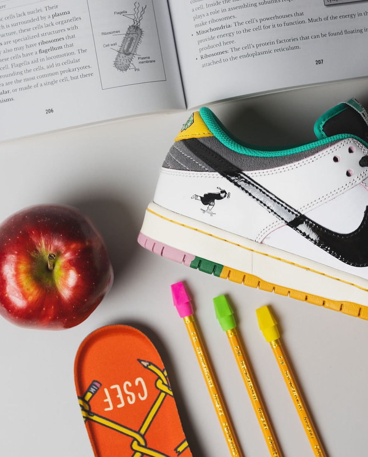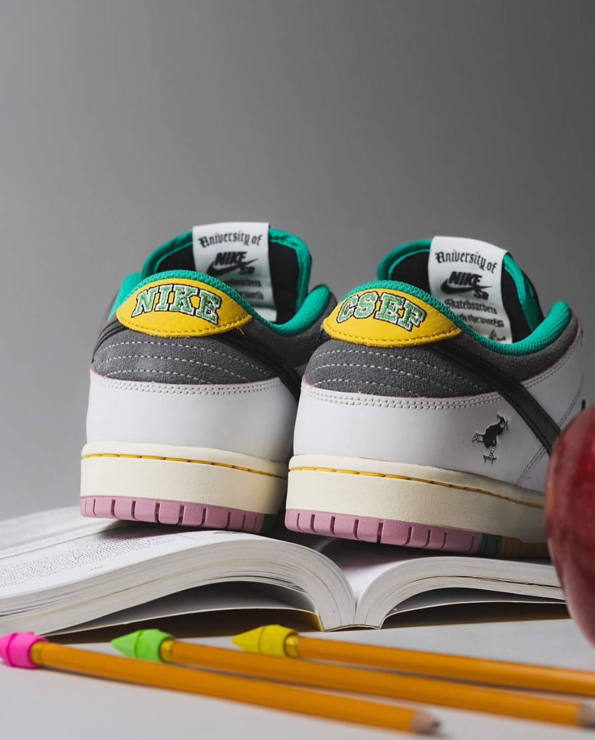 这双鞋是 Nike SB 与美国大学滑板教育基金会 CSEF 共同完成的,不仅有着丰富细节还暗藏刮刮乐玩法。