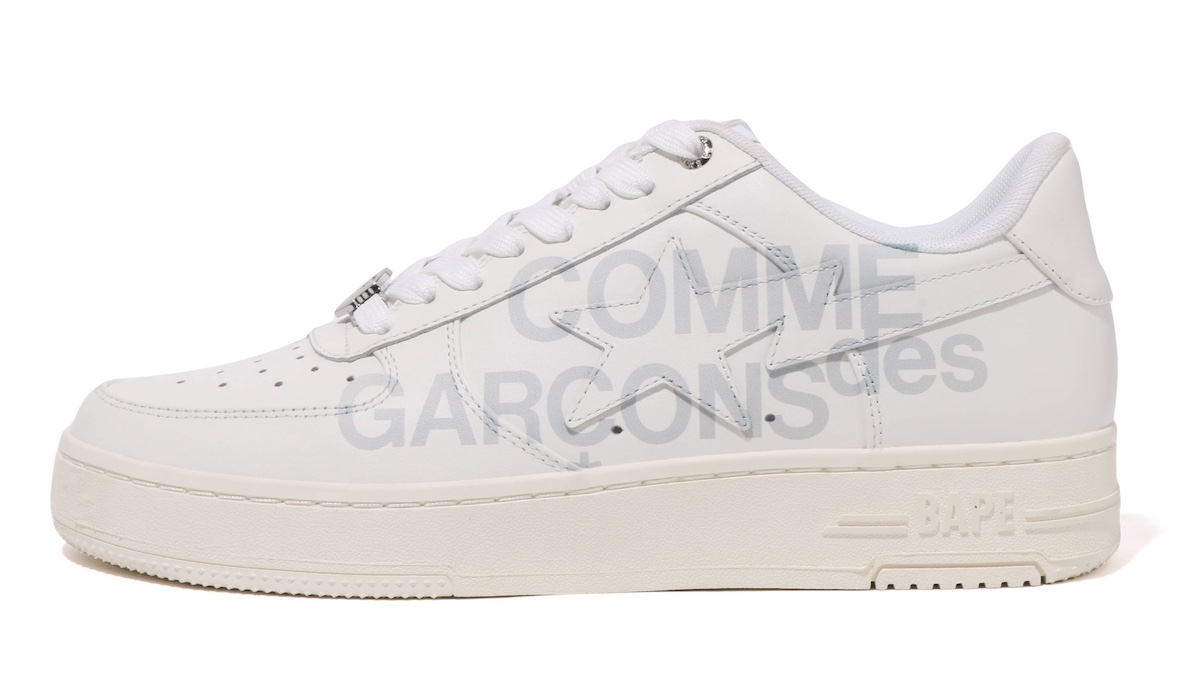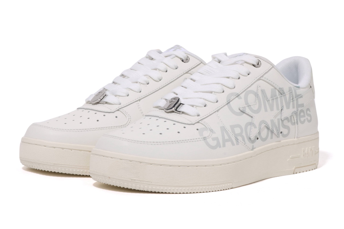 鞋型方式是大家十分熟悉的 BAPE STA,鞋侧安排上 COMME des GARÇONS 字样,显得更有街头感了。