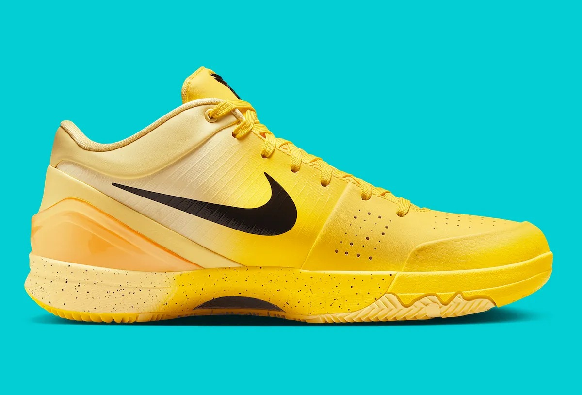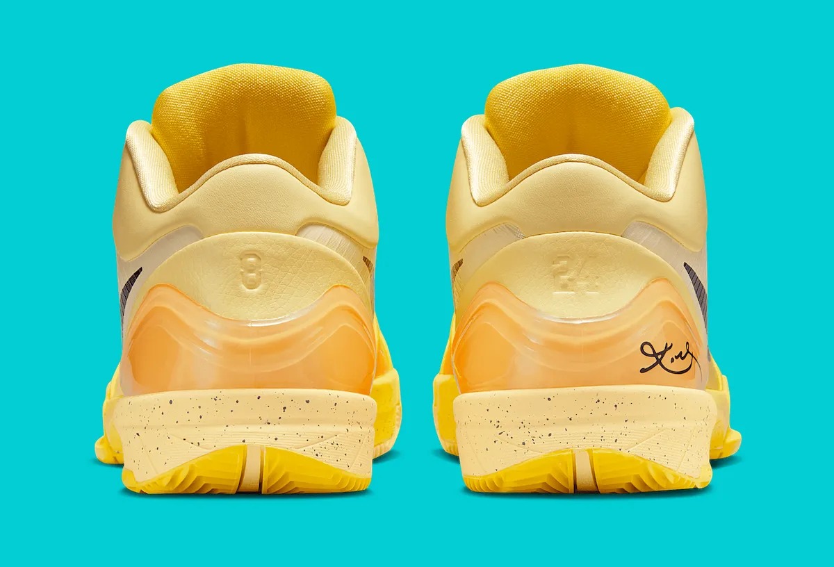 采用了极为亮眼的闪电黄贯穿,鞋舌的 Kobe Logo 以及鞋身侧边的 Swoosh 以黑色带来反差视觉效果。