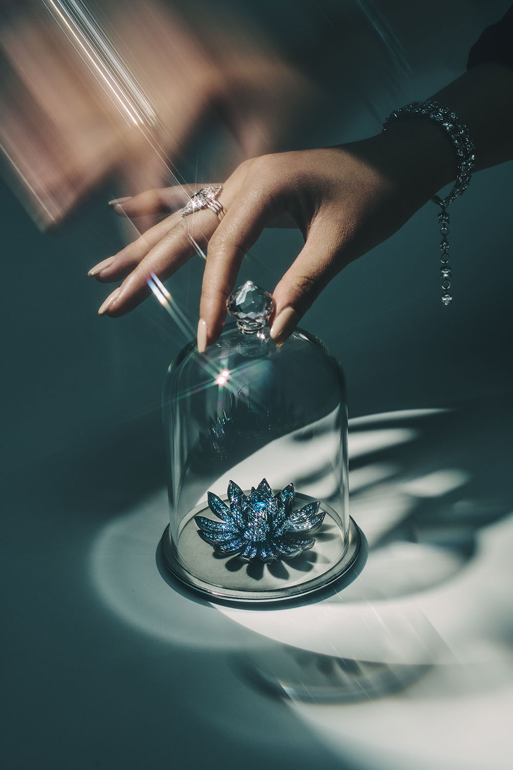 鞋面额外有网状结构包裹,据说设计灵感源自蜻蜓翅膀,配合施华洛世奇水晶,随光线角度变幻折射出斑斓光泽。