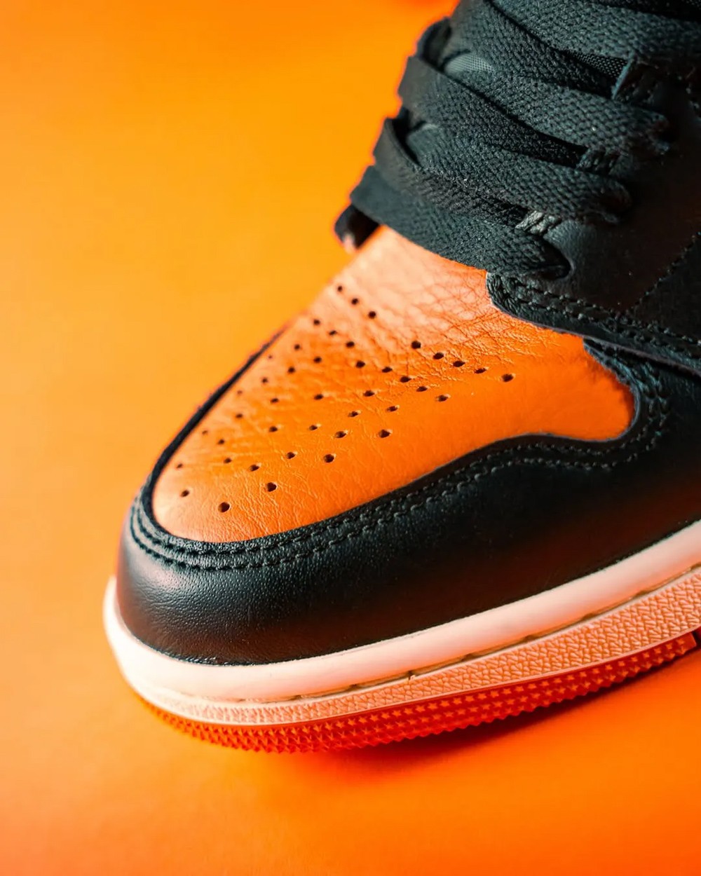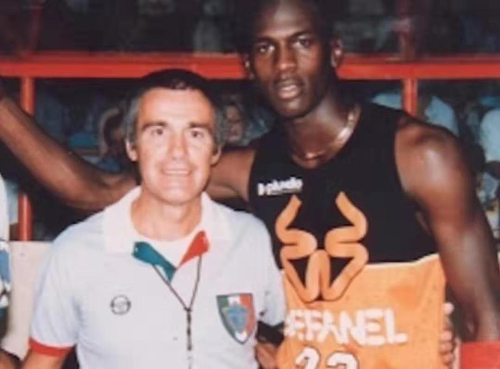 致敬 1985 年乔丹在一场意大利举行的 Nike 全明星赛上,远距离飞身滑翔扣篮,将篮板扣得粉碎,鞋身配色则还原当时 MJ 球衣中的构色方案。