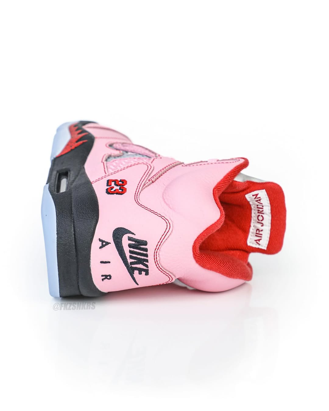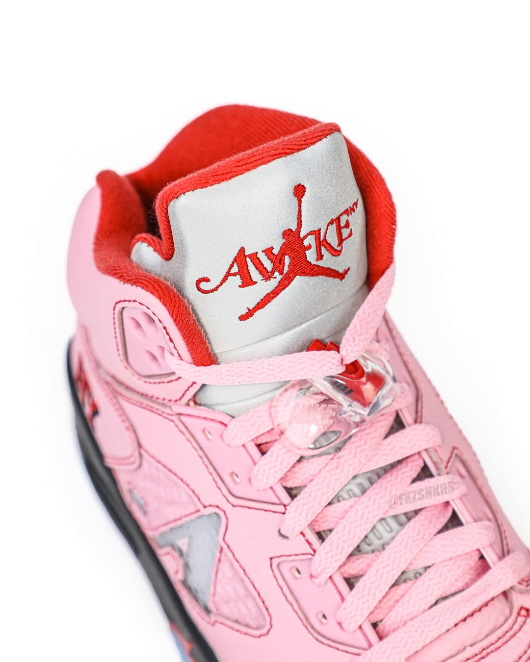 曝光多时的 Awake NY x Air Jordan 5 “Arctic Pink” 最近又迎来一组新图,这次细节都能看清了。