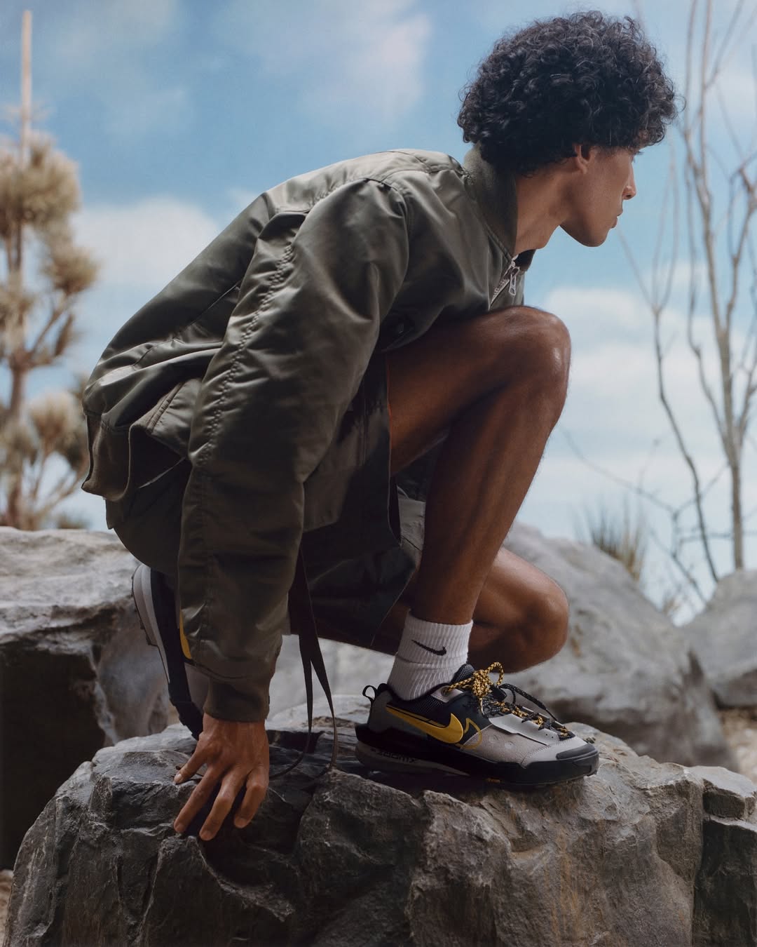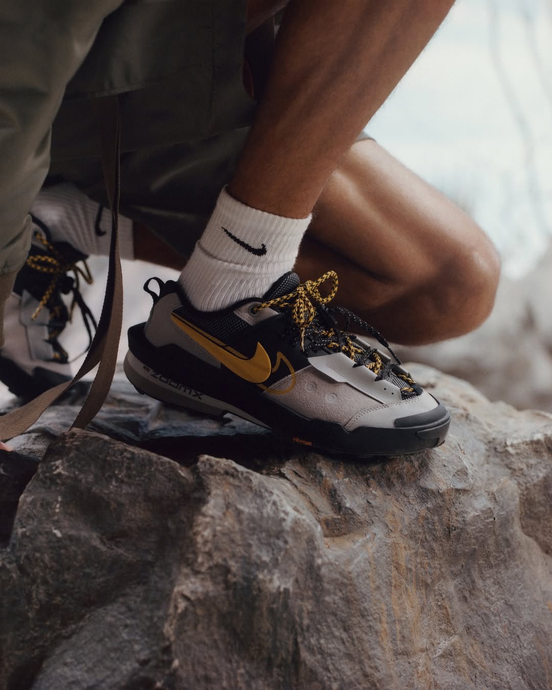 采用了 Nike 越野跑鞋 Zegama 的鞋面,使用翻毛皮、皮革和织物组合。