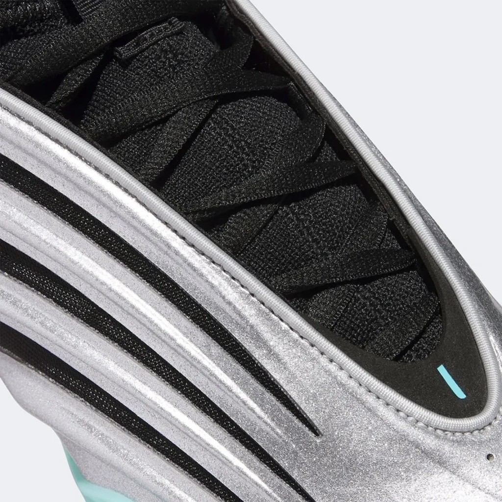 为了着重呈现金属质感,本次在鞋面运用大量银色覆盖,如同铸造一般。