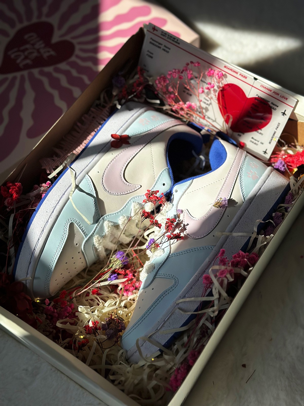 即将迎来 520 情人节,但市面上的「甜蜜」主题鞋款选择并不丰富,所以又到了球鞋定制艺术家们大显神通的时候!