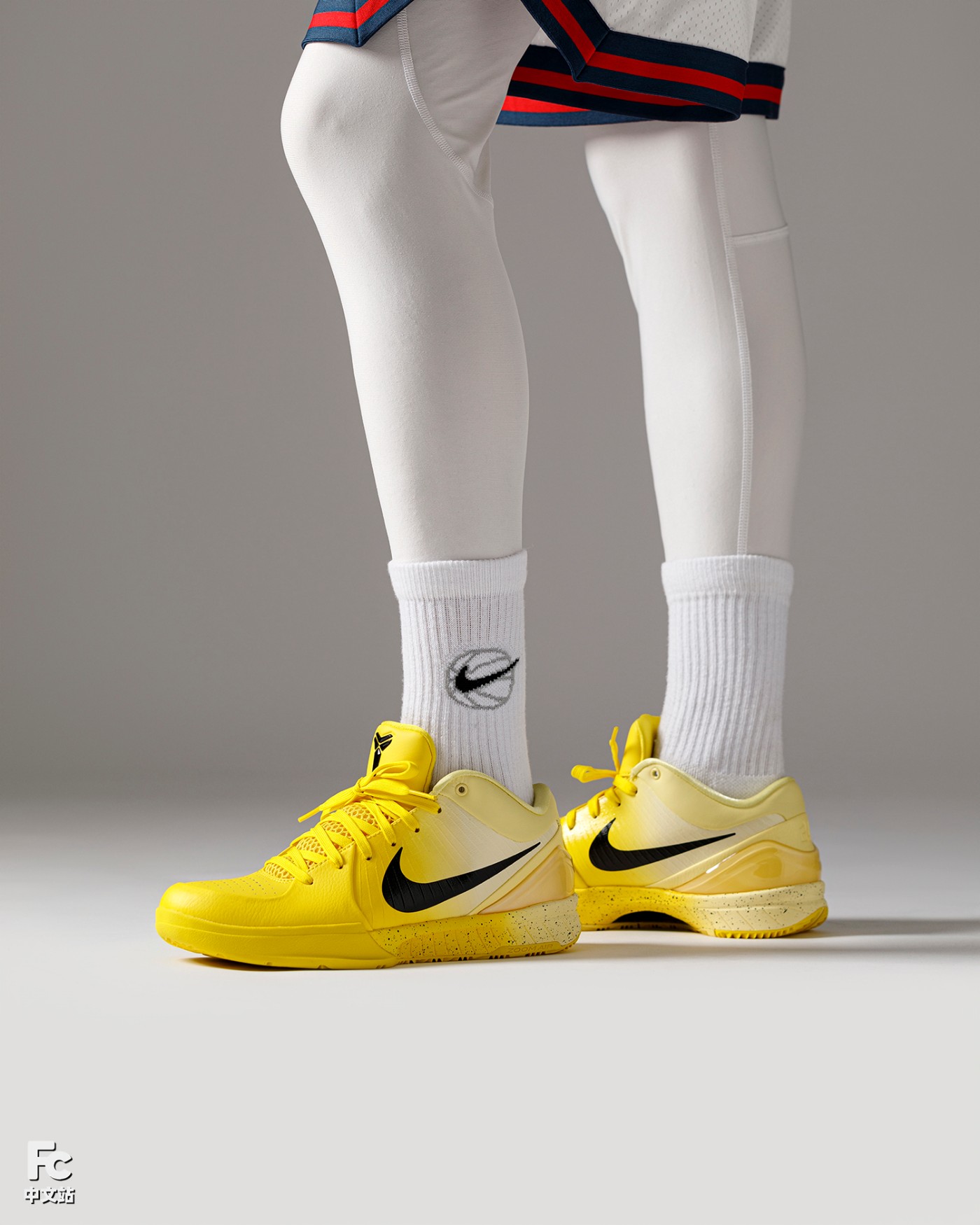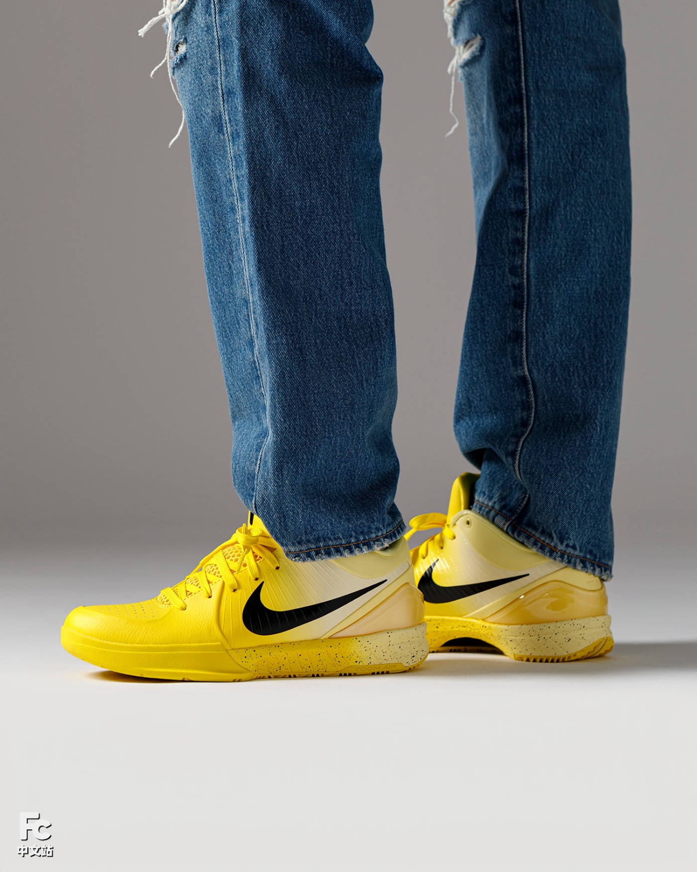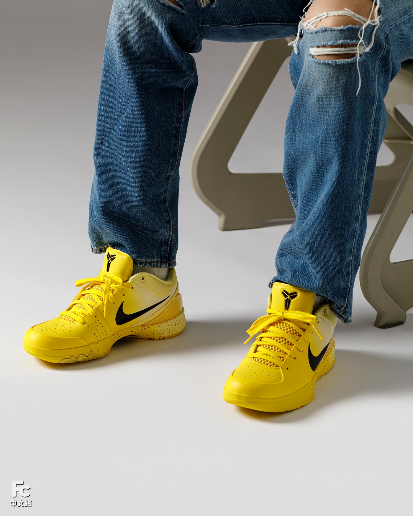 上脚效果本次小编准备了两种搭配风格,首先是实战风格,醒目的柠檬黄装扮,结合 Kobe 4 极具辨识度的低帮轮廓,非常醒目。