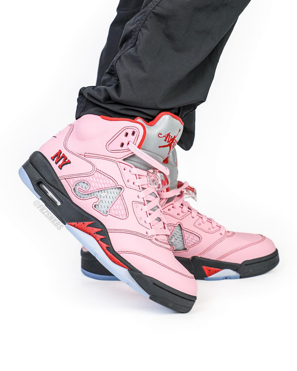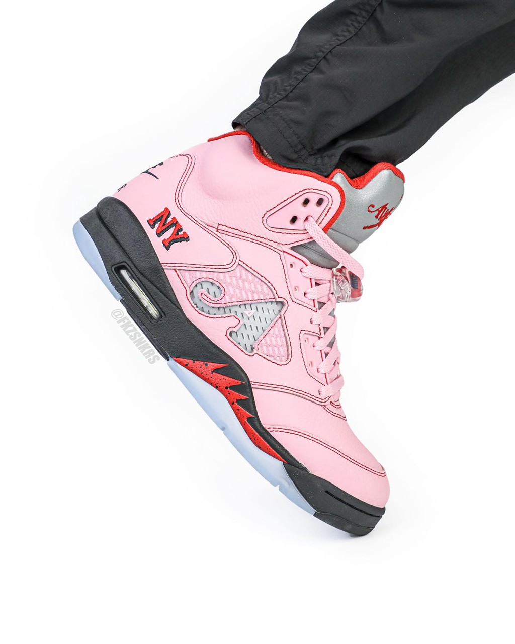比如 8 月即将登场的 Awake NY x Air Jordan 5 “Arctic Pink” 最近迎来最新上脚。