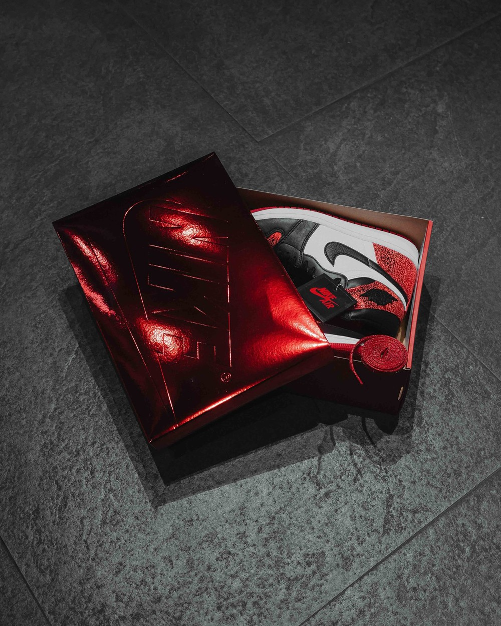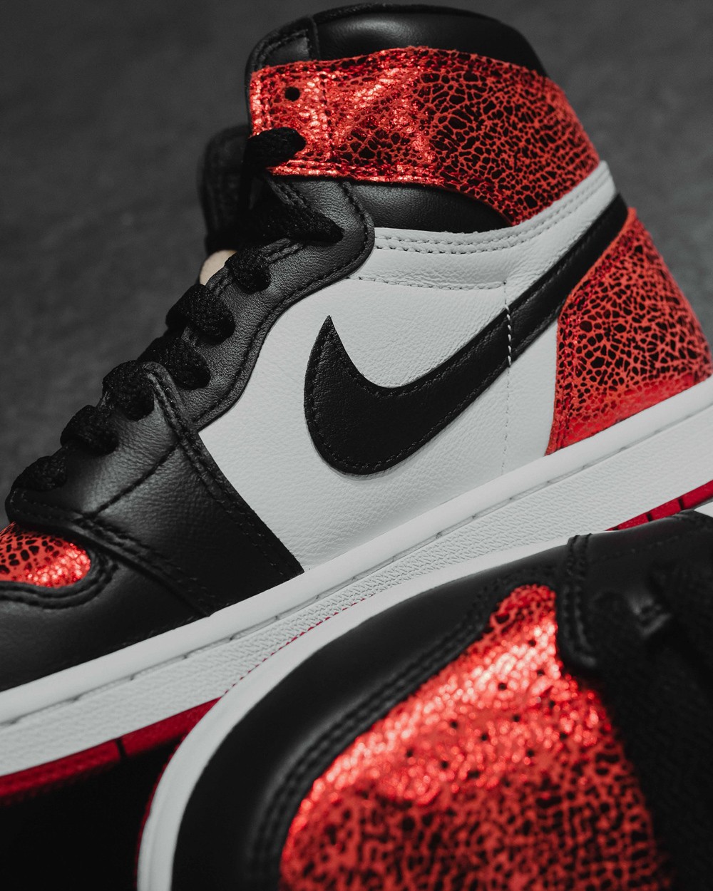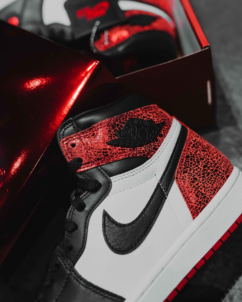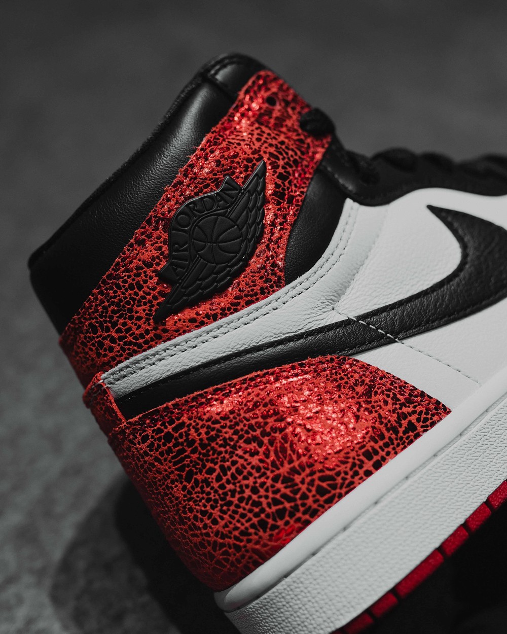 构色方案以超人气黑红脚趾为基础,原本红色皮革鞋面以金属质感的裂纹示人,赋予更为华丽的视觉感受。