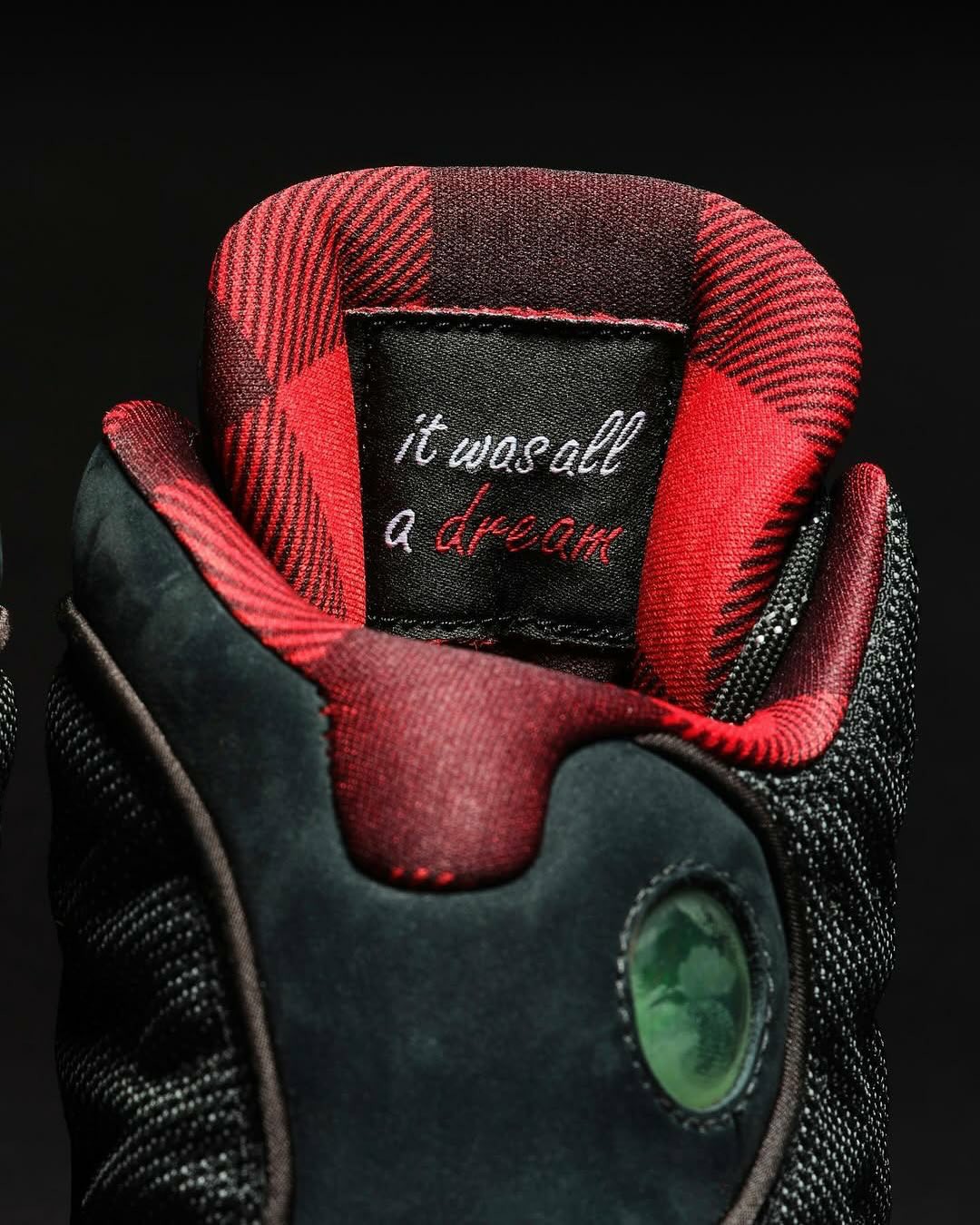以黑色为主调,搭配红黑格纹内衬,鞋舌处是 Biggie 头像,十分独特。