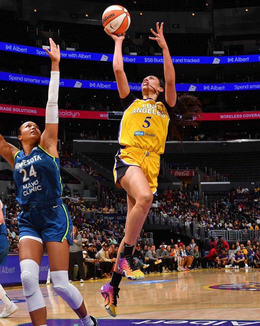 最近赶上 WNBA 新赛季开战,不少球鞋都惊艳亮相。 其中包括这双定制师专门为洛杉矶火花队球员 Dearica Hamby 打造的 Tatum 3,吸引了不少注意。 整体以好莱坞日落大道为灵感,通过绝美渐变色彰显颜值。 鞋面还做出了很多假二次元的细节,让鞋款看起来更加卡通。 不过这是一双手绘定制款式,没有市售的可能性,各位不妨透过图片好好欣赏欣赏吧! Pic via:dearicamarie