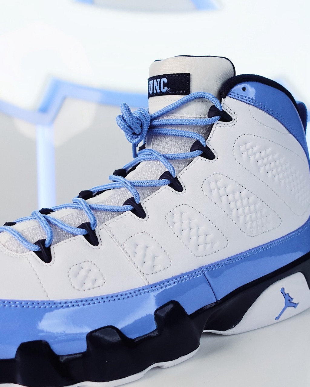 最近,北卡大学校队装备部晒出最新的 UNC x Air Jordan 9。
