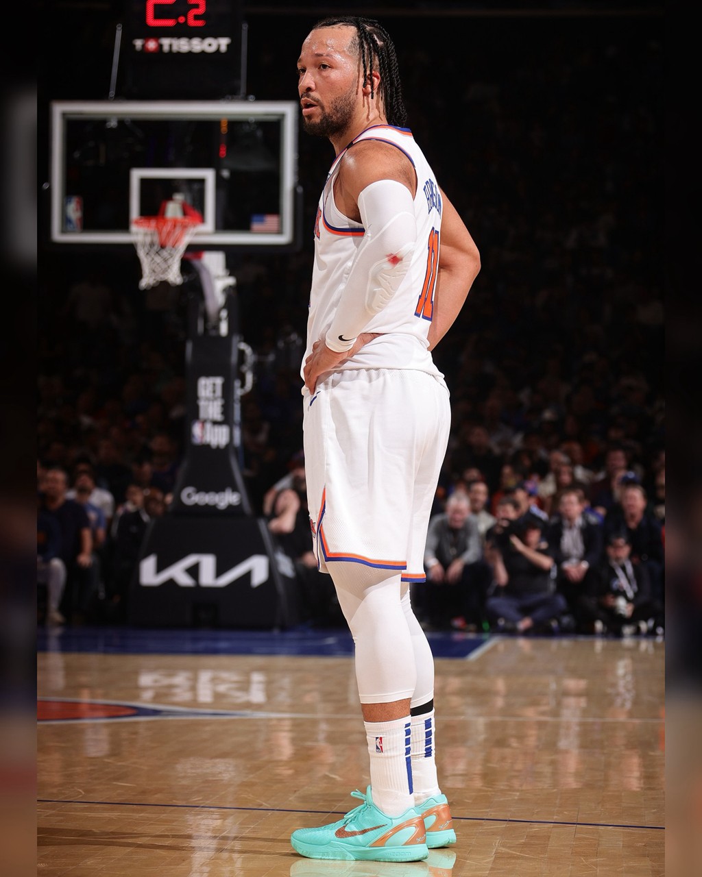 NBA 东部决赛 G2,尼克斯当家球星布伦森上脚了一双颜值拉满的 Nike Kobe 6 Protro。