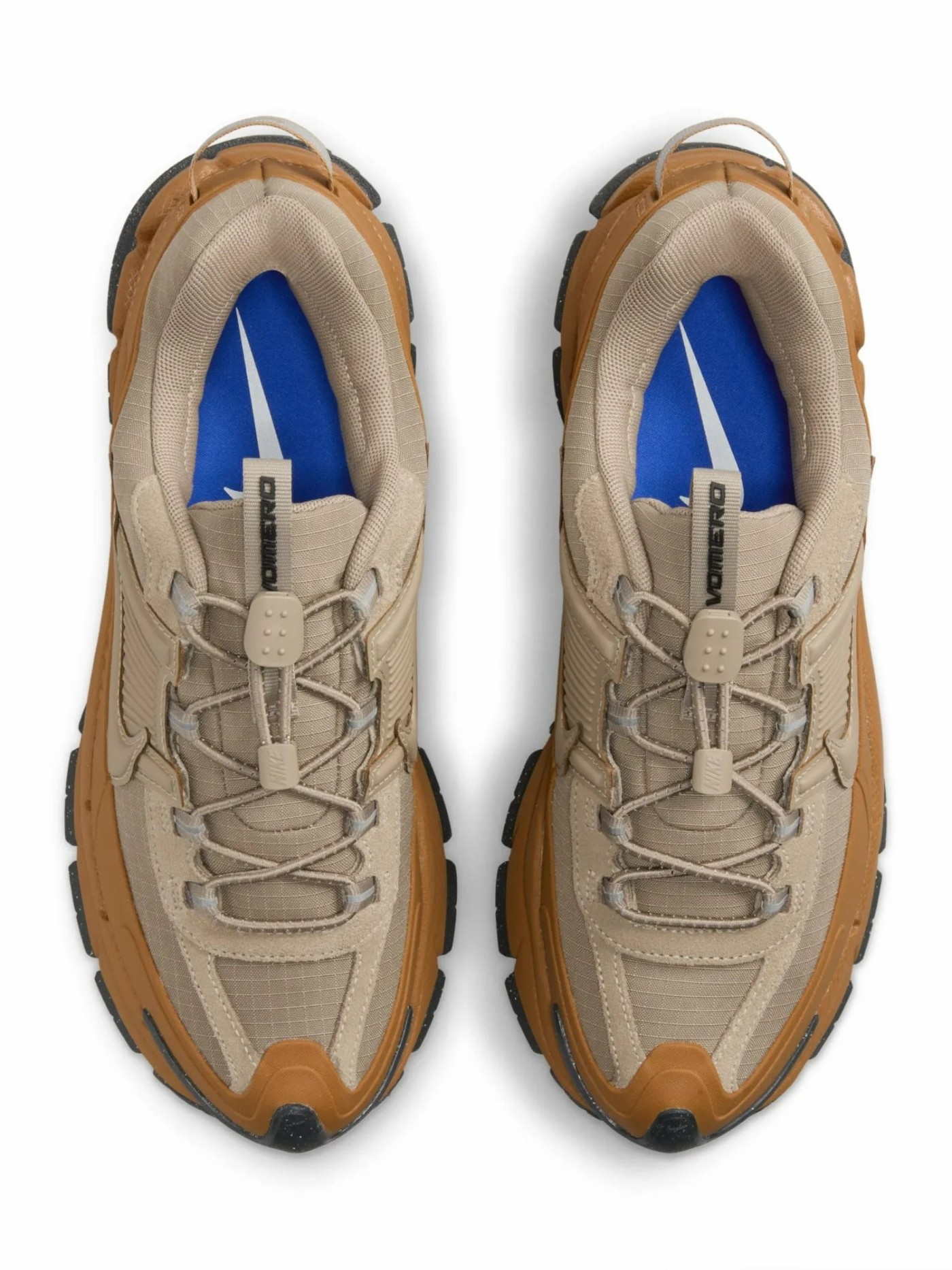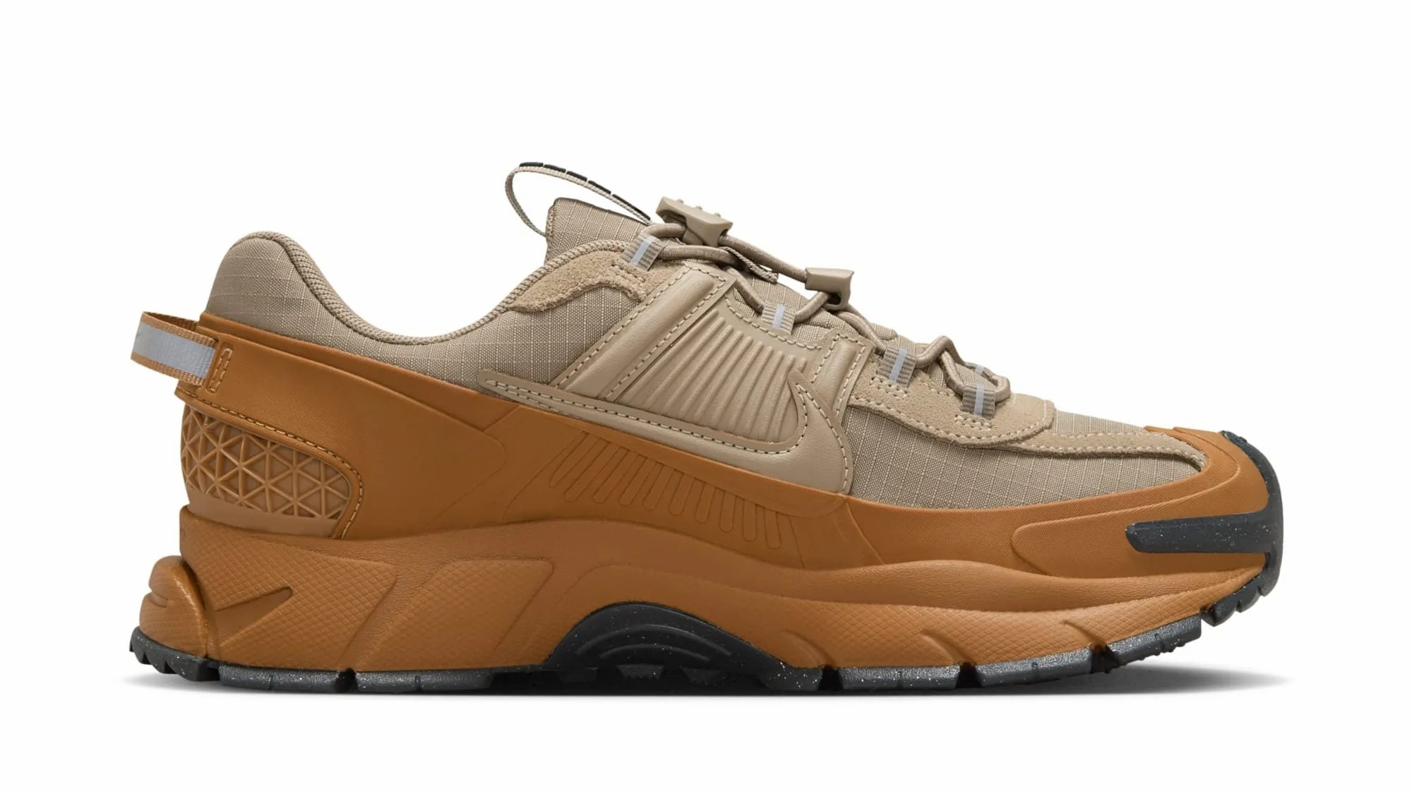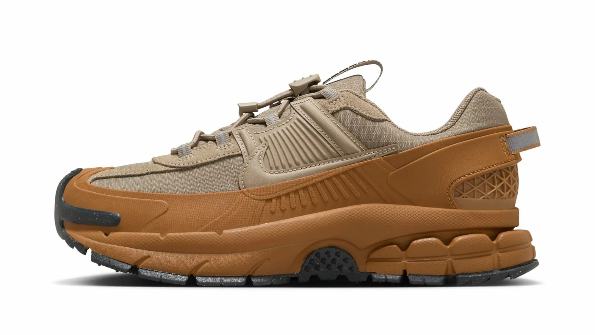 将经典 Zoom Vomero 5 与越野跑鞋的元素结合,鞋面采用轻质尼龙材质,鞋舌和后跟处均设有拉环。