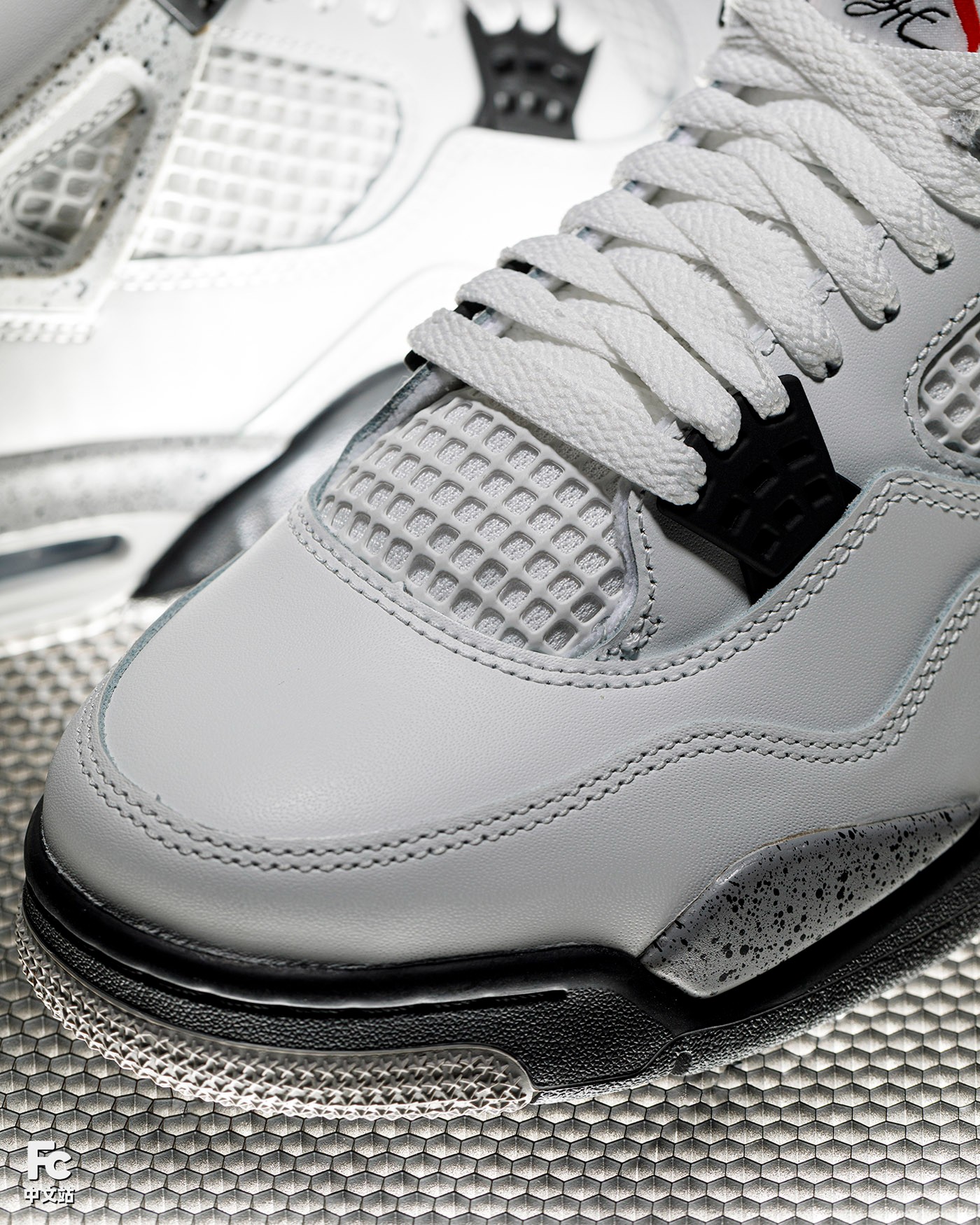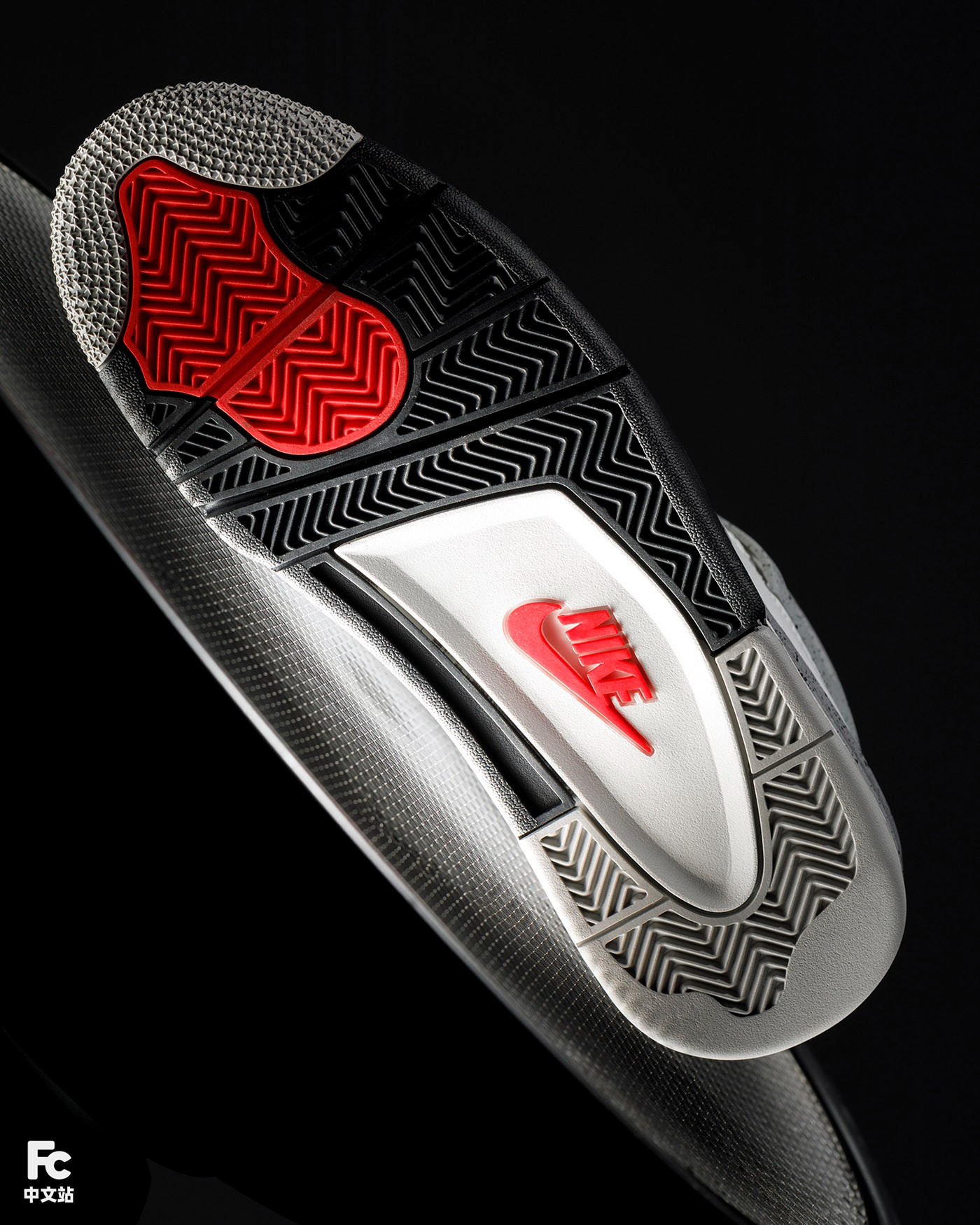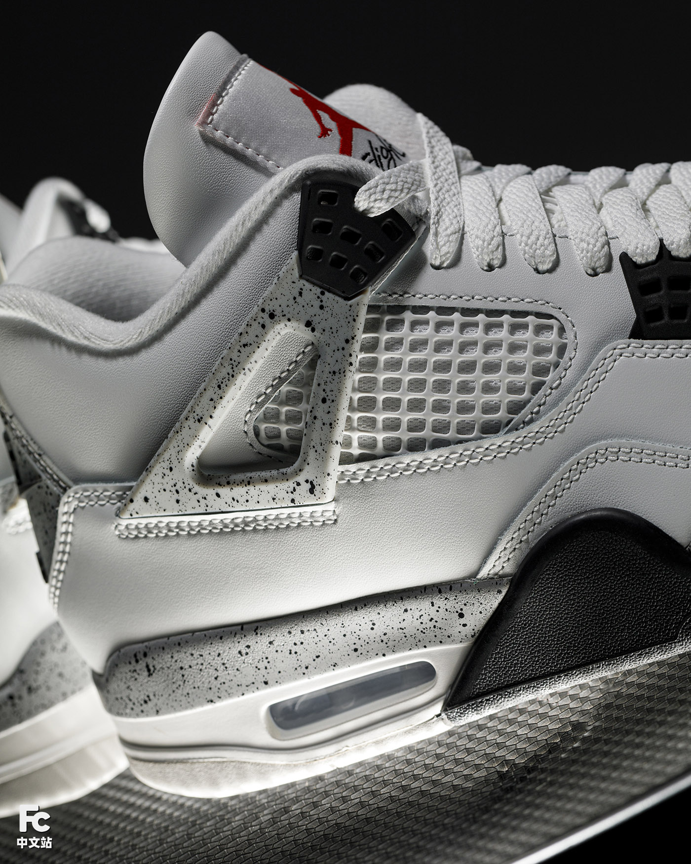 白水泥 Air Jordan 4 “White Cement” 以清爽简约的基调,承载了鞋舌、后跟、鞋底等部位的独特设计,而水泥灰细节的托衬,也成就了它最具代表性的视觉元素。