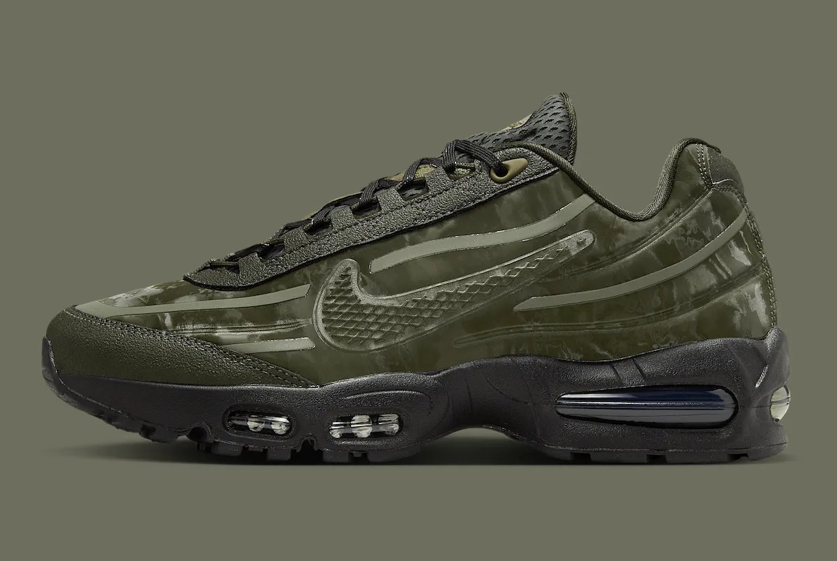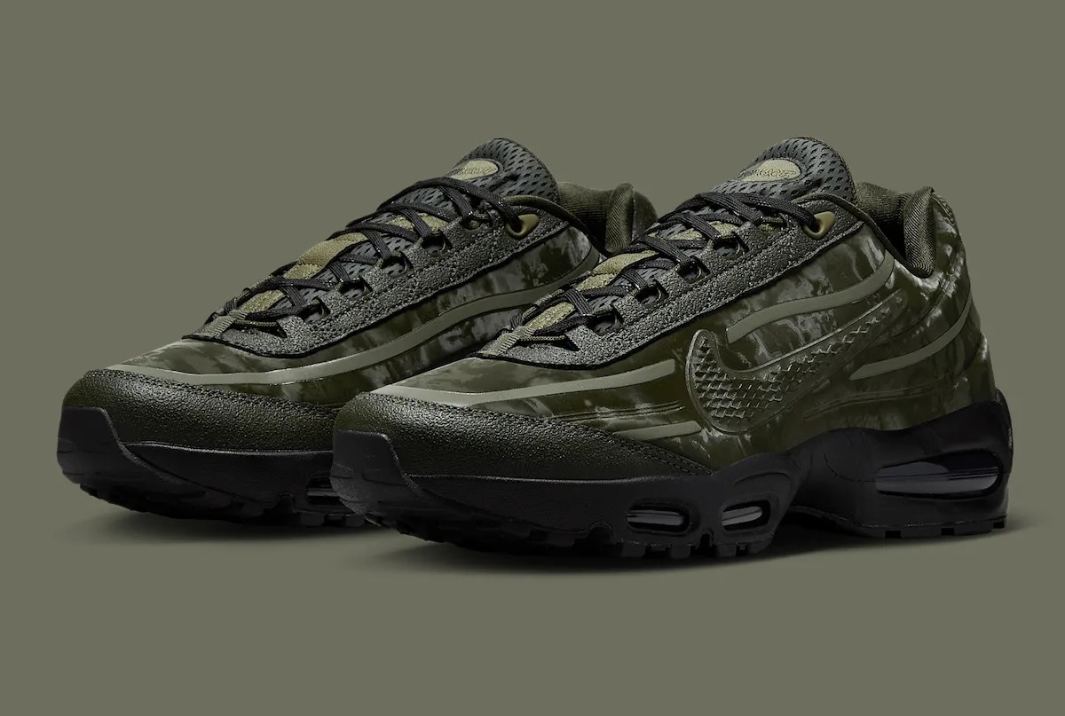 这双 WORKSOUT x Nike Air Max 95 “Sequoia” 融合了军事风、迷彩纹理、3M 反光细节,是一款不可多得的街头穿搭神器。