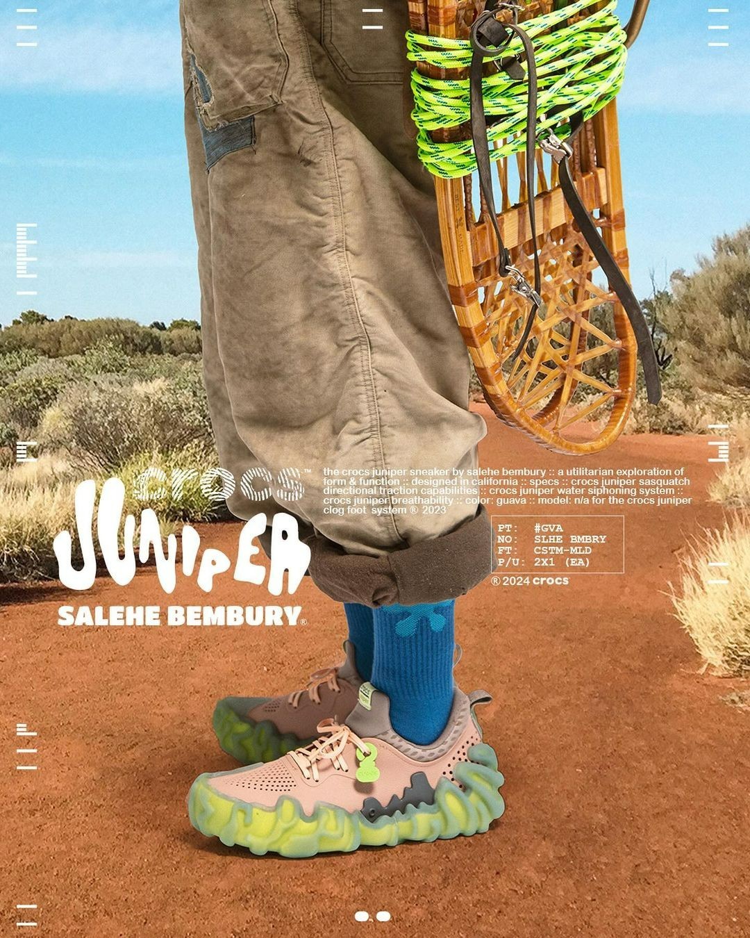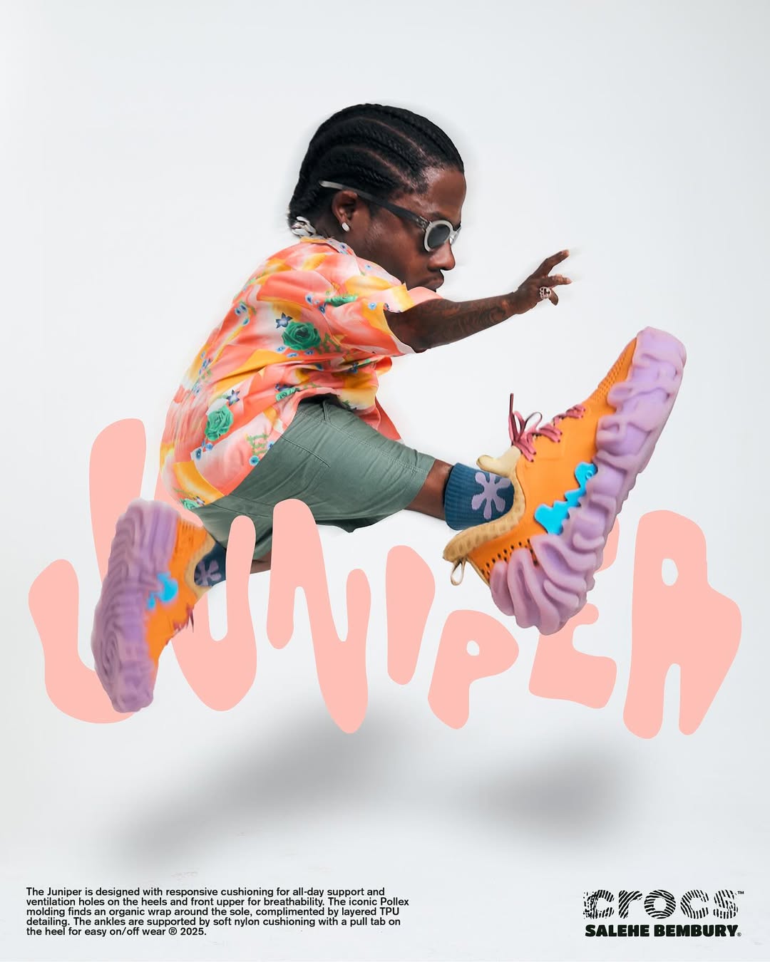 Crocs 与「指纹鞋大帝」Salehe Bembury 带来的新鞋,鞋跟、鞋面都设有透气孔,可使脚掌保持干燥。