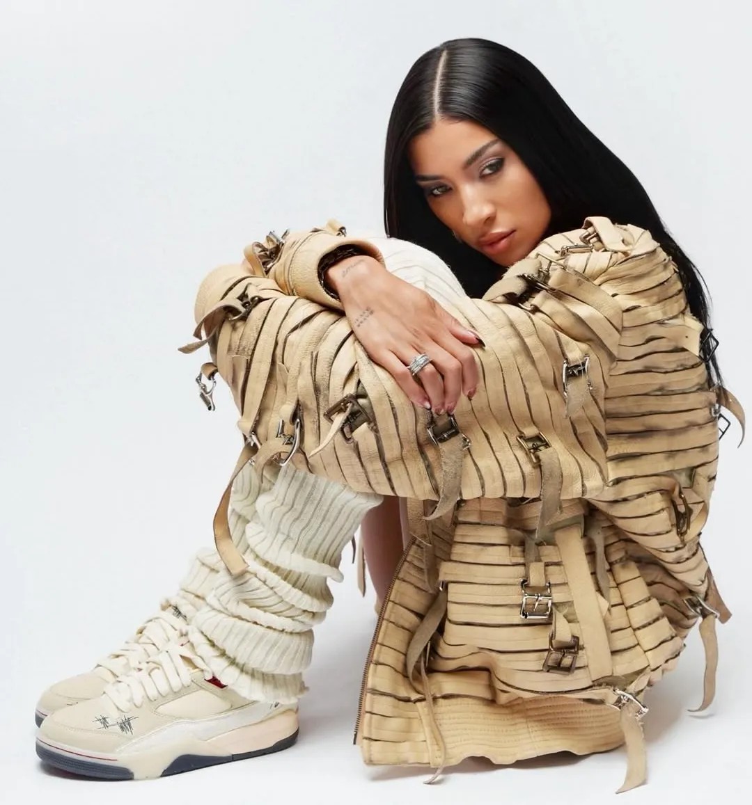 此前 Who Decides War 打造的神裤就吸引 到碧梨的上身,不知联名鞋款是否会得到本人的上脚。