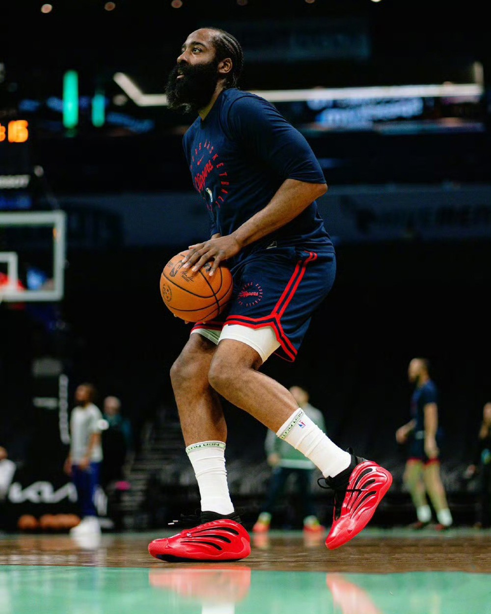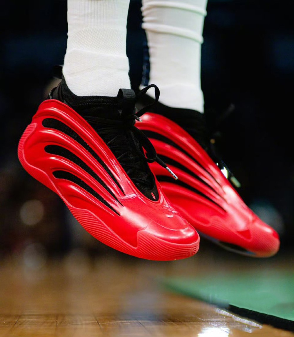 眼前这款 adidas Harden Vol. 9 “Red Metallic” 哈登还在此前比赛中上脚。