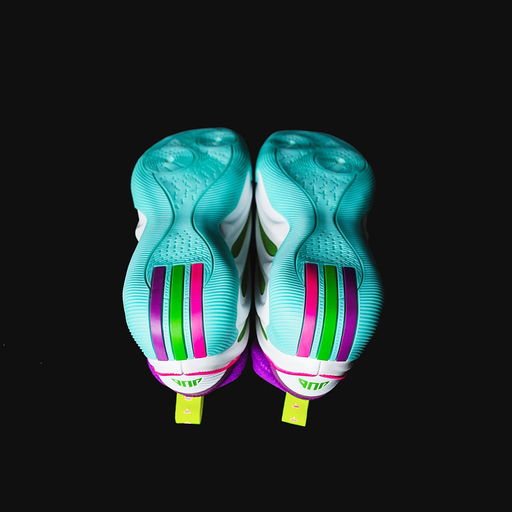 整体配色活力清爽,细节方面,鞋舌是他的球衣号码,后跟还印着他的外号 J Dub,处处都是个人元素。