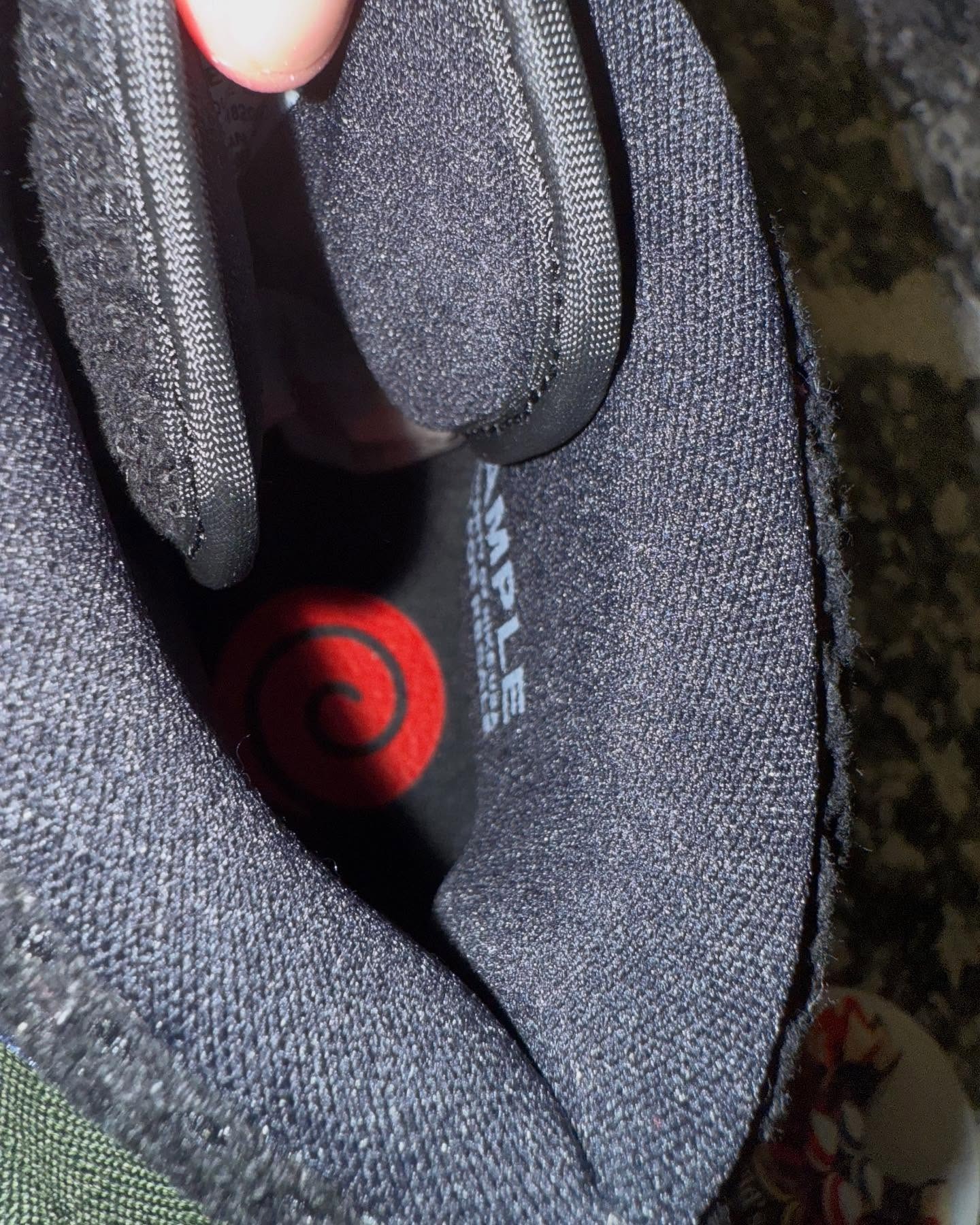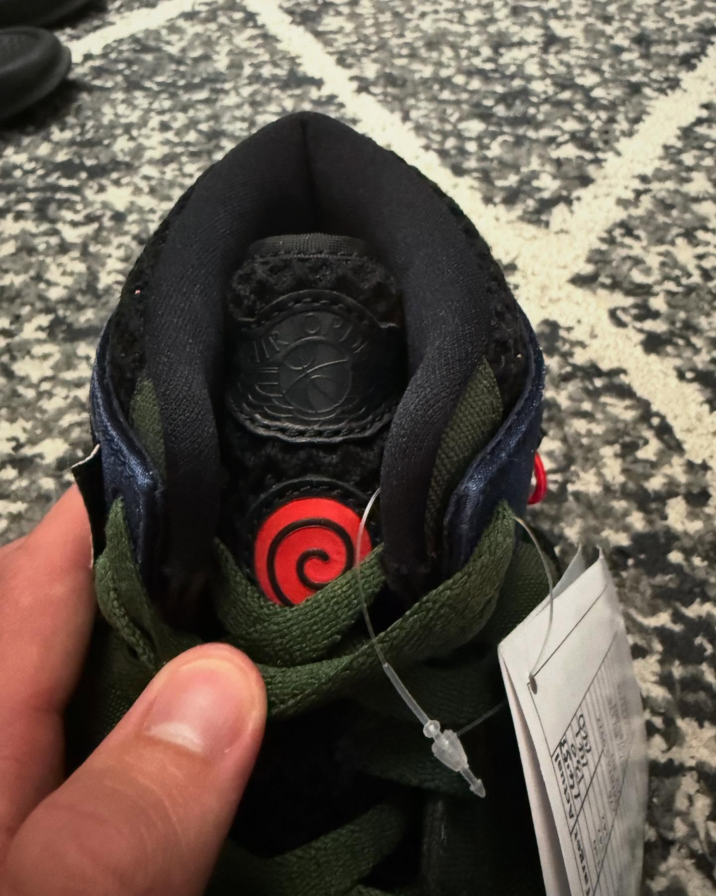 在脚踝绑带上,更是并排呈现了 Jumpman 飞人标志和疾风传 Logo,同时还有一个火影风格的 Zion 标签。