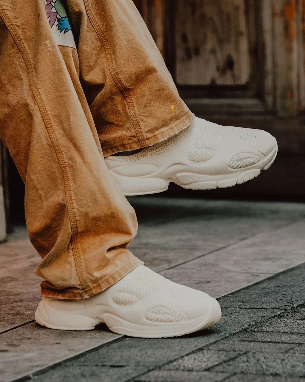 两种款式都摒弃了鞋带,完全融入未来主义风格,一脚蹬的穿脱方式,遛弯出街相当方便。