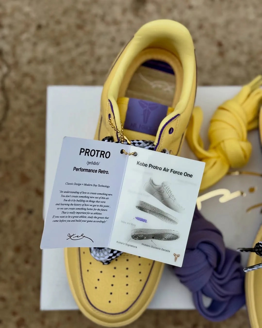 这双 Kobe Bryant x Nike Air Force 1 Protro “Soft Yellow” 是以科比的经典照片为主题打造。