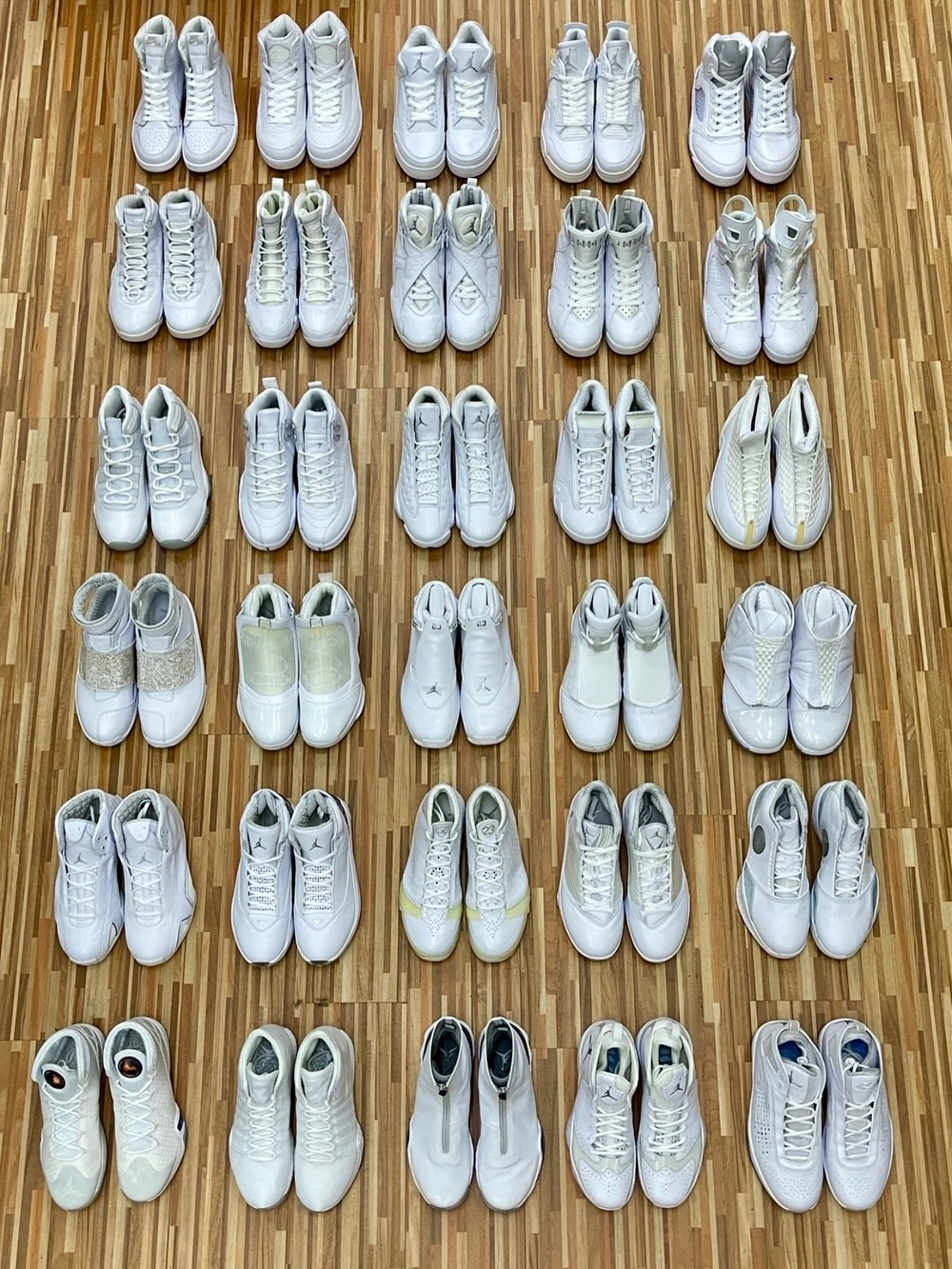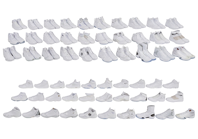 而 30 款纯白 AJ 正代的整套现身市场,则是在 2017 年 Heritage Auctions 举办的拍卖活动中,当时预计成交价不低于 20W 美元,相当于 140W 人民币,可算是球鞋玩家的终极收藏。