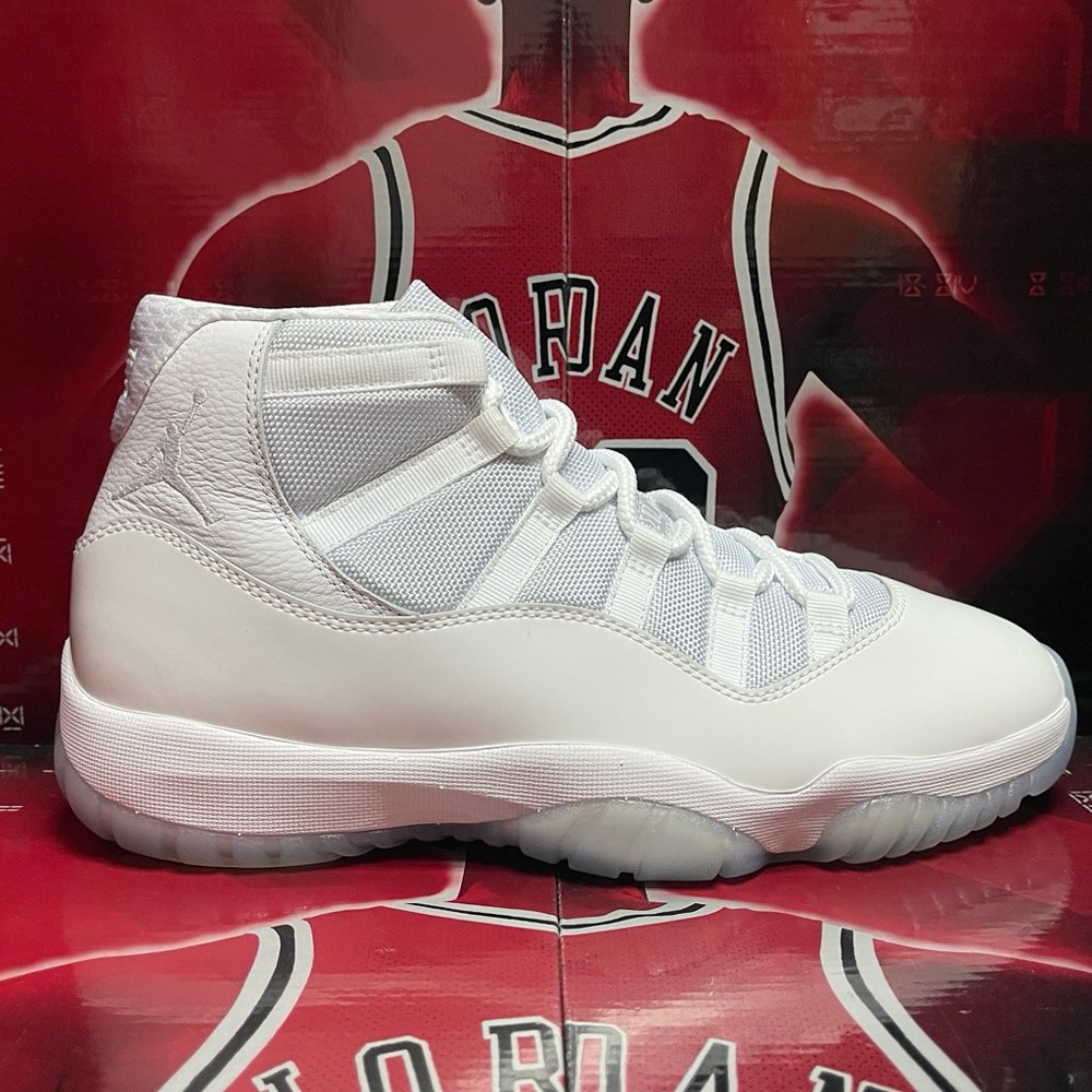 说回眼前这款 Air Jordan 11 本身,纯白漆皮与尼龙鞋面,还原 AJ11 最纯粹的质感。