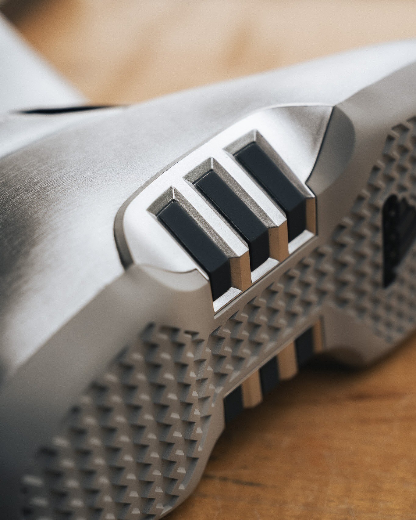巧妙的将三条杠元素融合进鞋身设计,带有金属质感的银色鞋面,让这双鞋的整体感受更加的科幻和未来。
