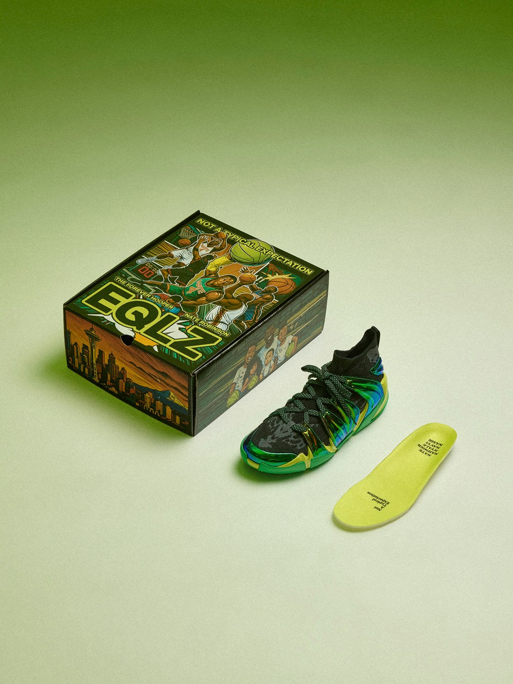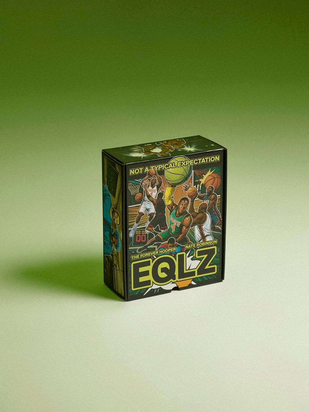 鞋盒包装延续 EQLZ一贯的叙事风格,每双球鞋都装载于一个内特亲自参与创作的漫画风格鞋盒中。