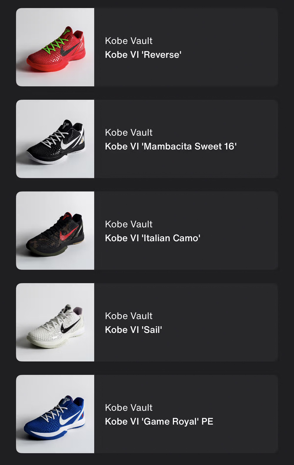 而传闻后续 Kobe 球鞋发售也会率先在这个「Kobe Vault」中预告,相当于 Nike SNKRS 给科比战靴单独开辟了一个专区。