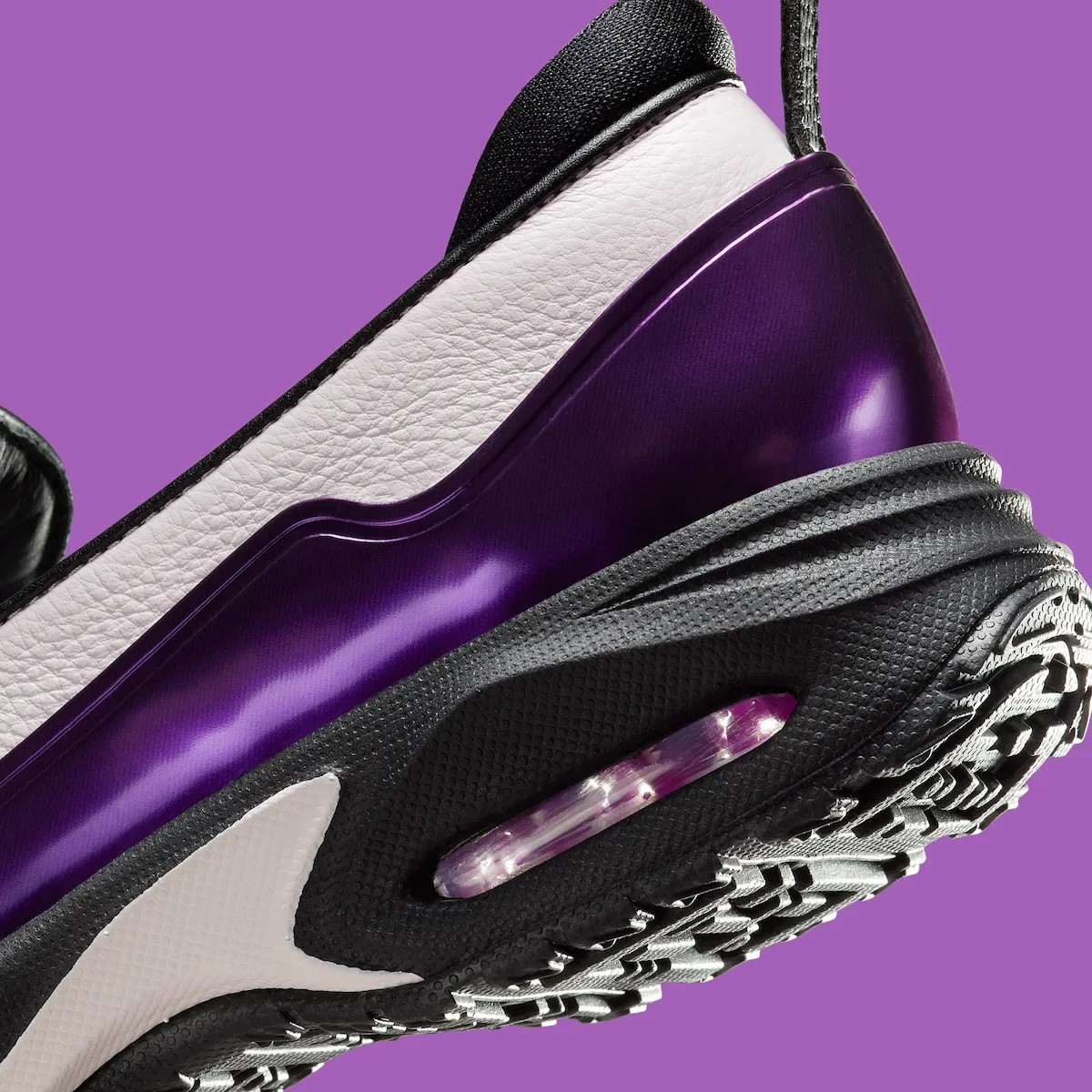 以皮革包裹鞋面,鞋侧的紫色,让这双鞋看起来不那么单调。